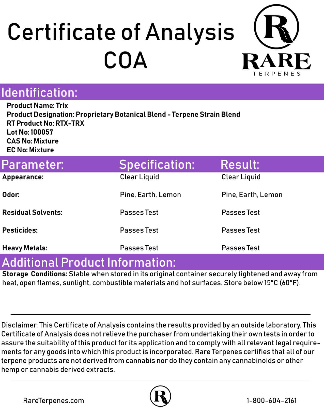 Rare Terpenes Tepene Strain Blends Trix Lab Report important details about vaping products.