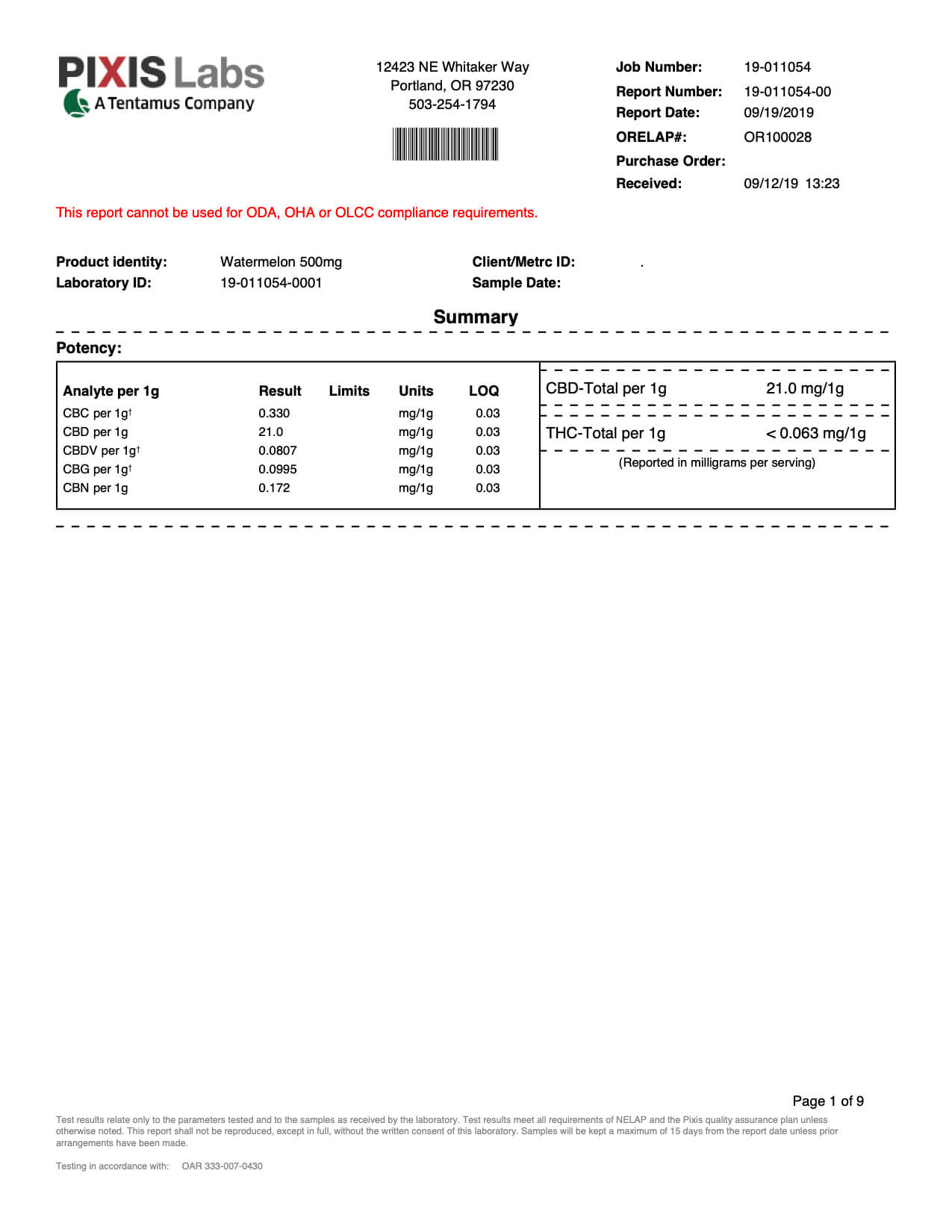 REBELLION CBD Watermelon Tincture Lab Report