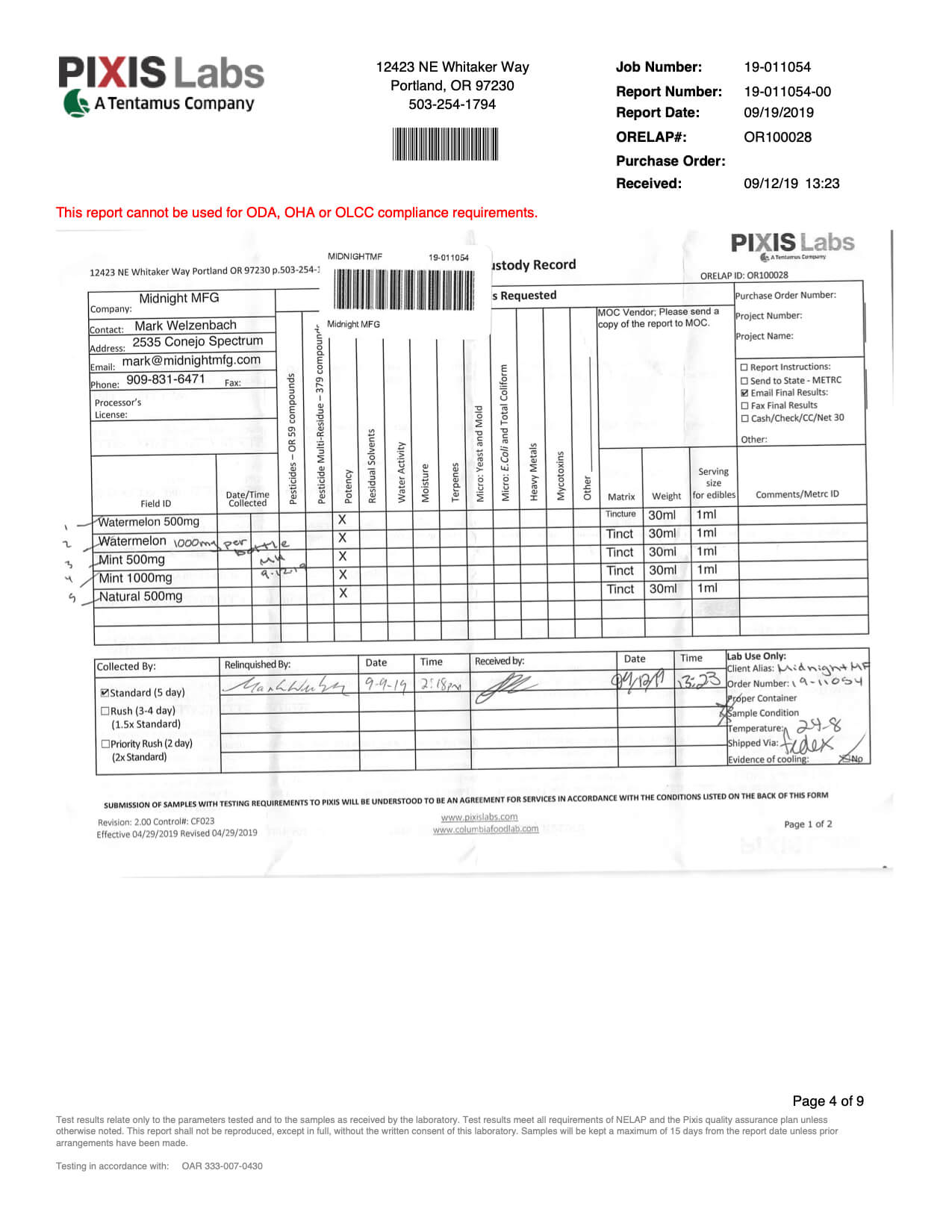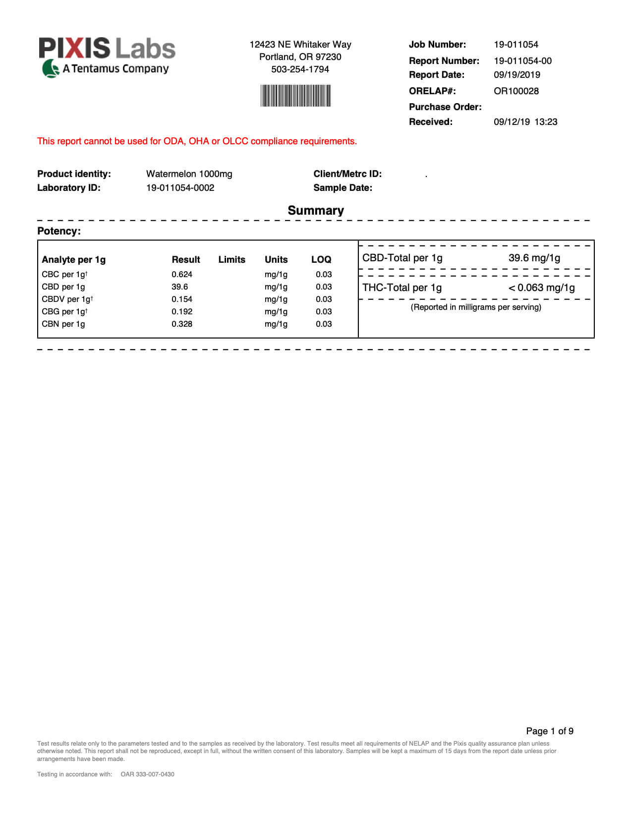 REBELLION CBD Watermelon Tincture Lab Reports test results with reference to vapes products.