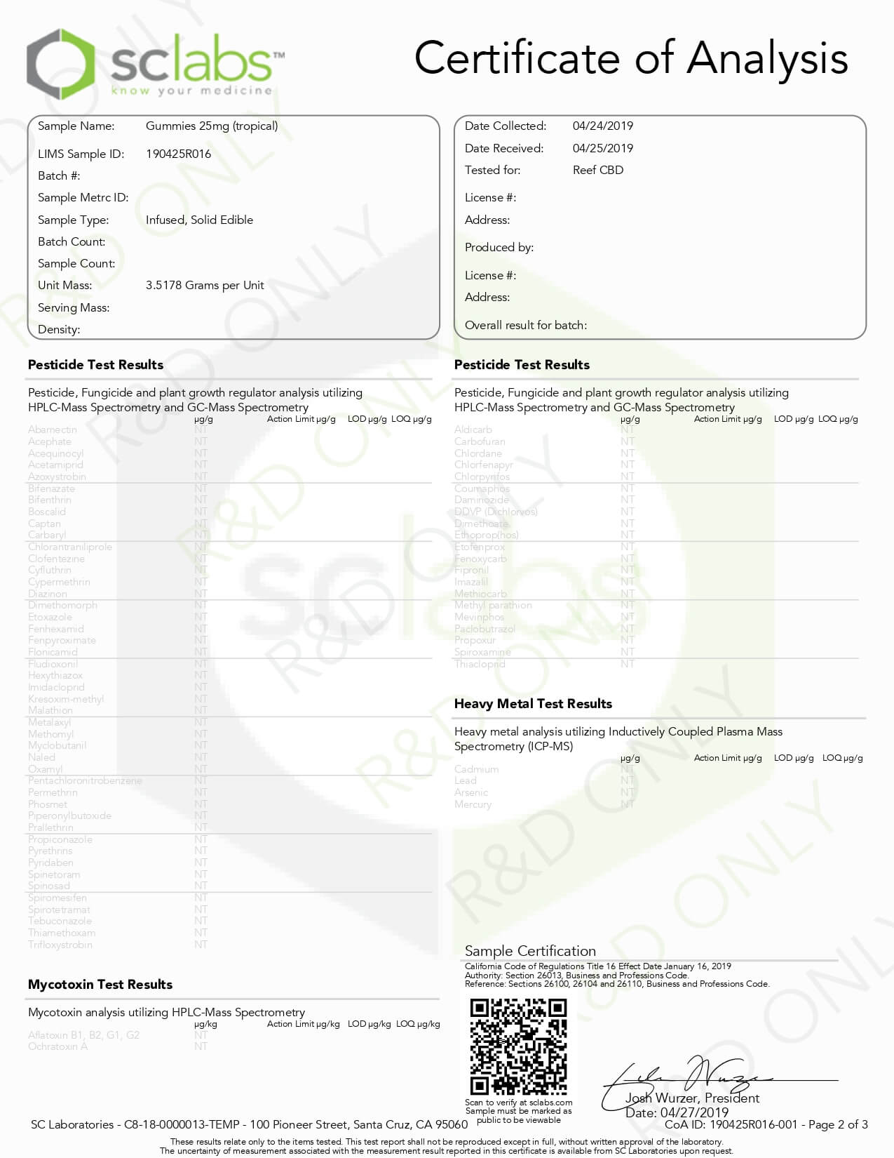 Reef CBD Edible Tropical Gummies Lab Report important details about vaping products.