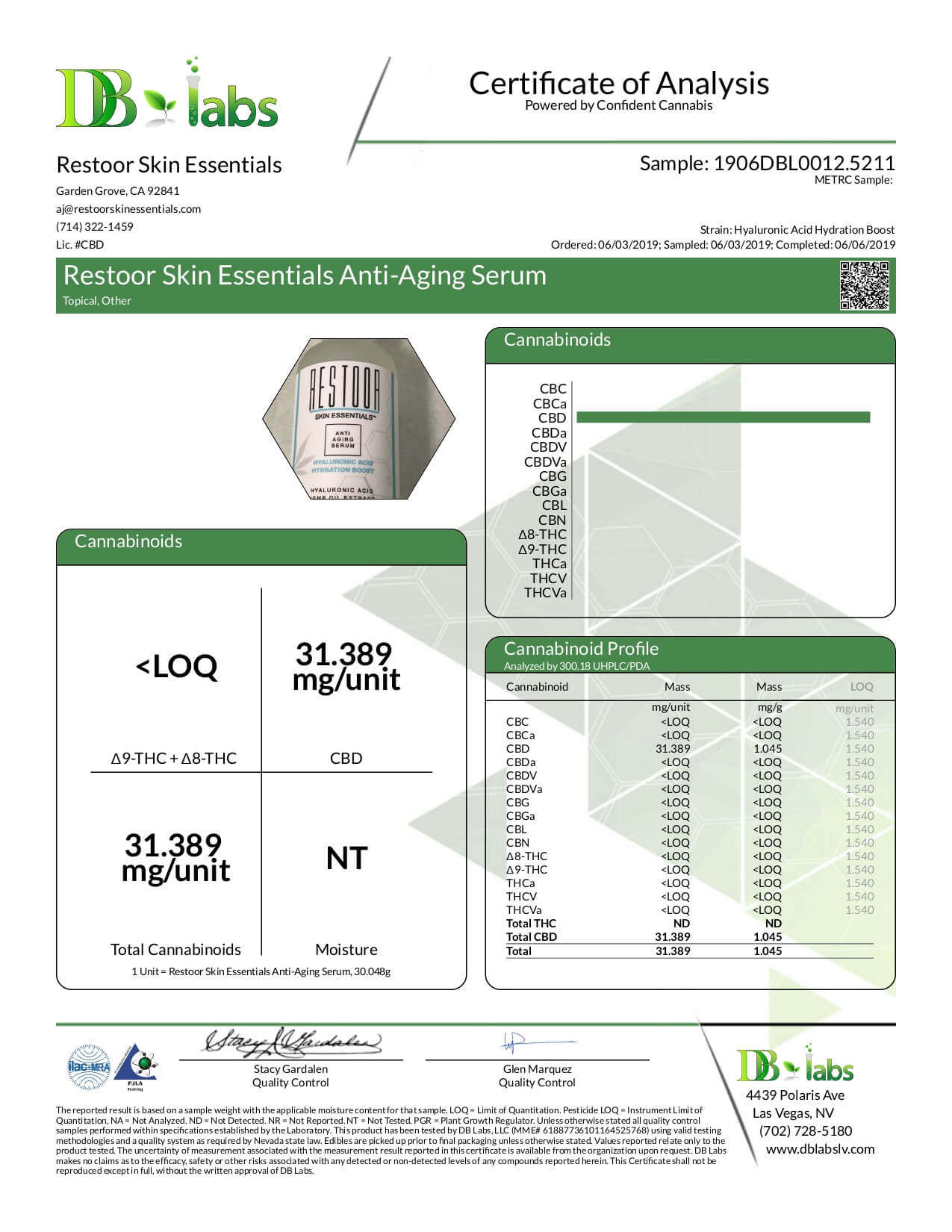 Restoor Skin Essentials Hyaluronic Acid Hydration Boost Serum Lab Report important details about vaping products.