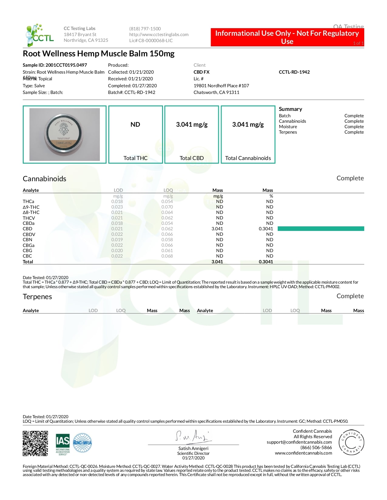 Root Wellness CBD Menthol Muscle Balm Lab Report