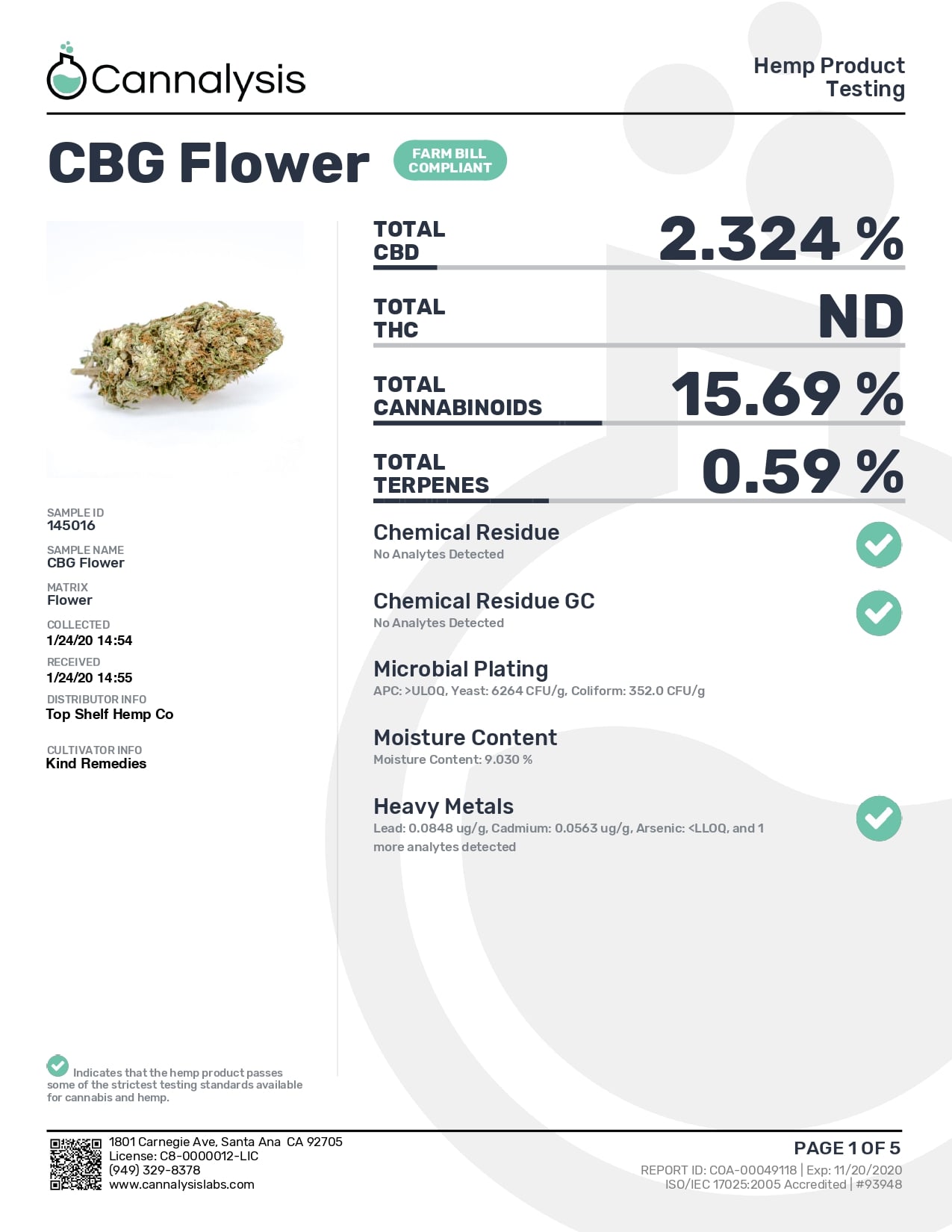 Root Wellness Hemp CBG Pre Roll 2 Pack Lab Report