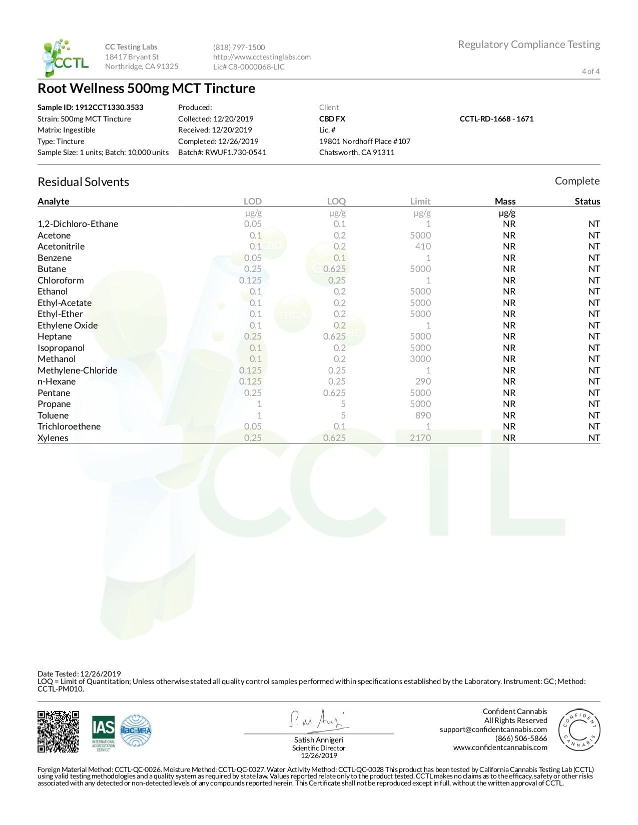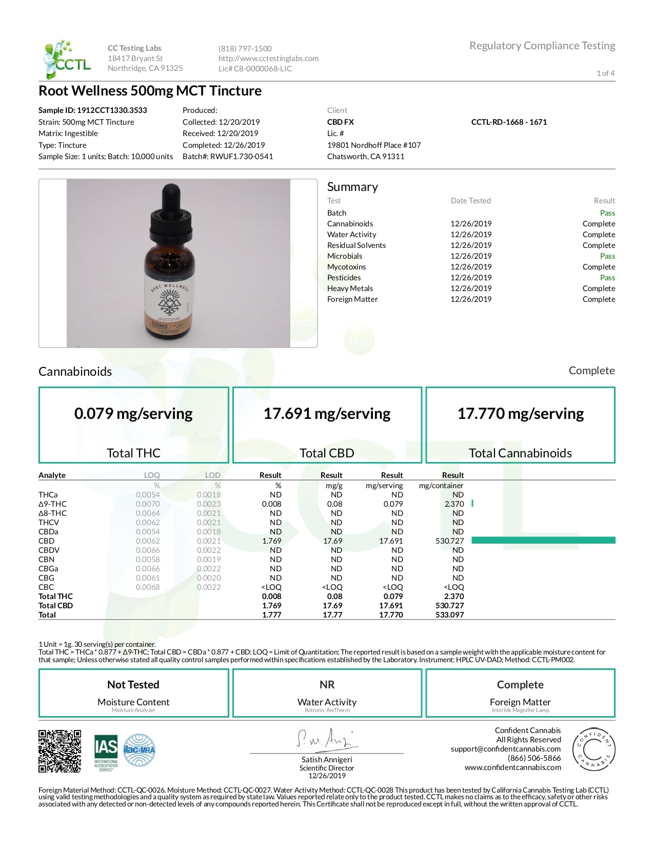 Root Wellness Raw CBD Tincture Lab Report Full Spectrum 500mg