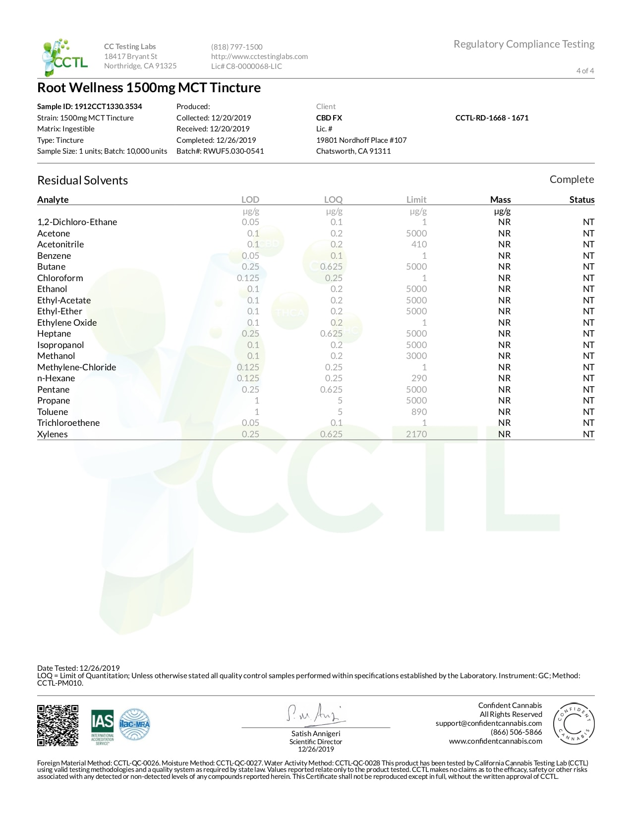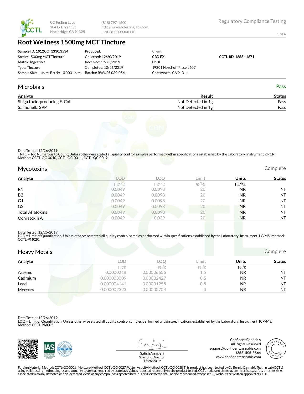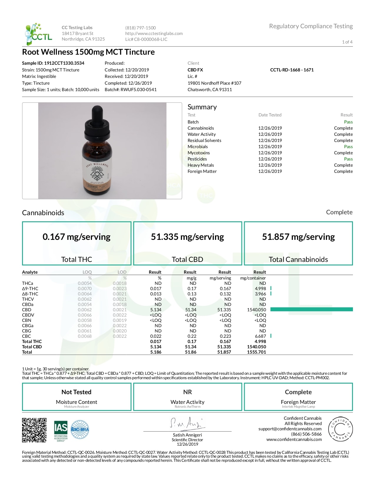 Root Wellness Raw CBD Tincture Lab Report Full Spectrum 1500mg