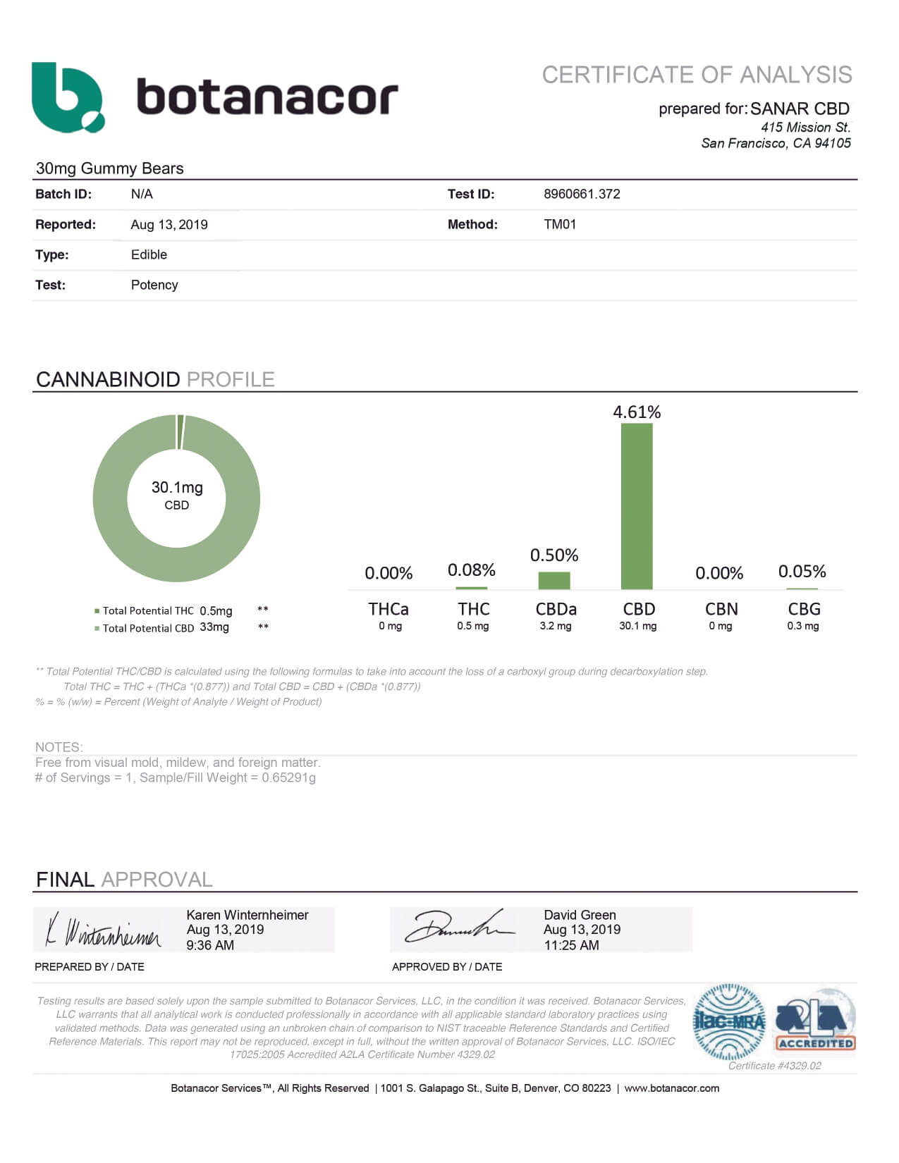 Sanar CBD Edible Full Spectrum Gummies Lab Report