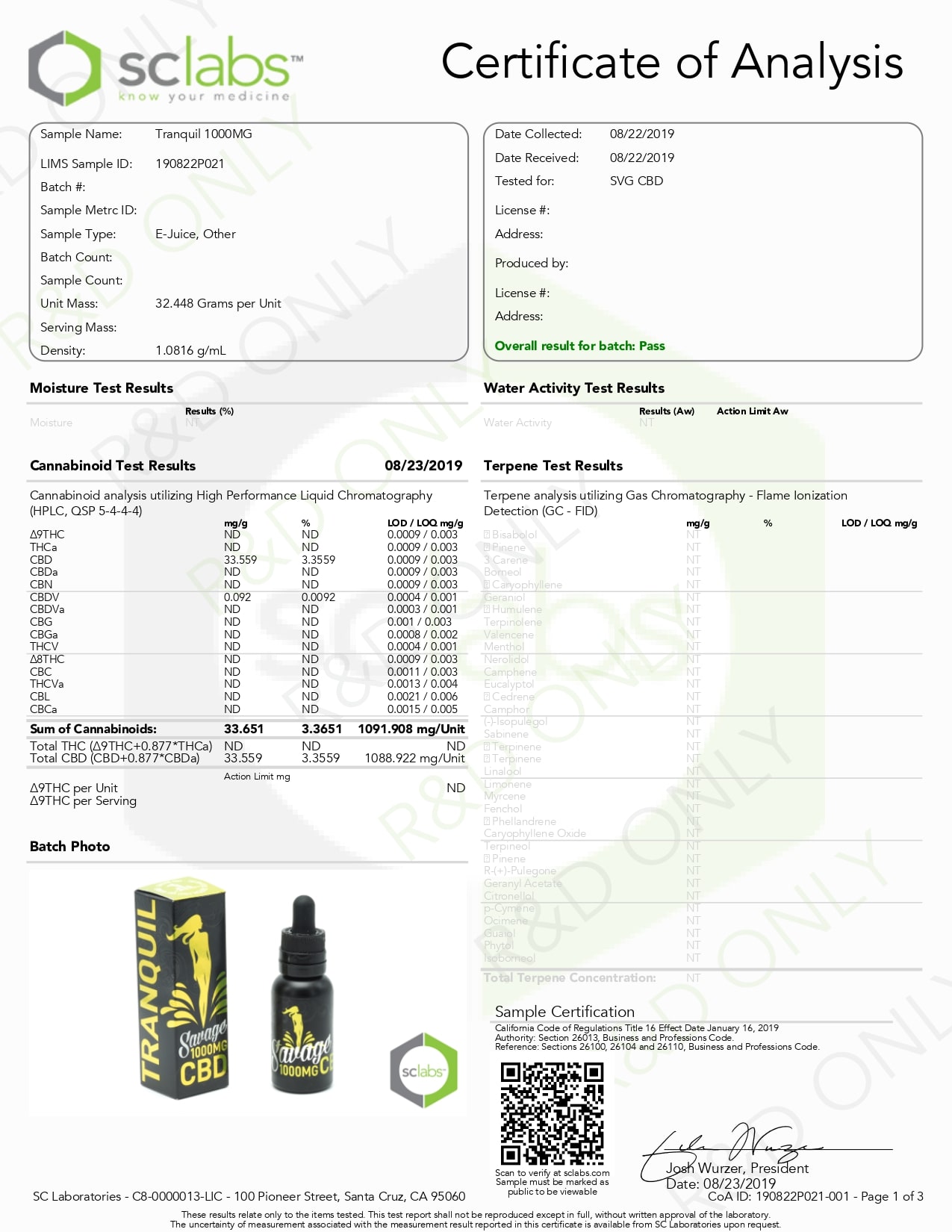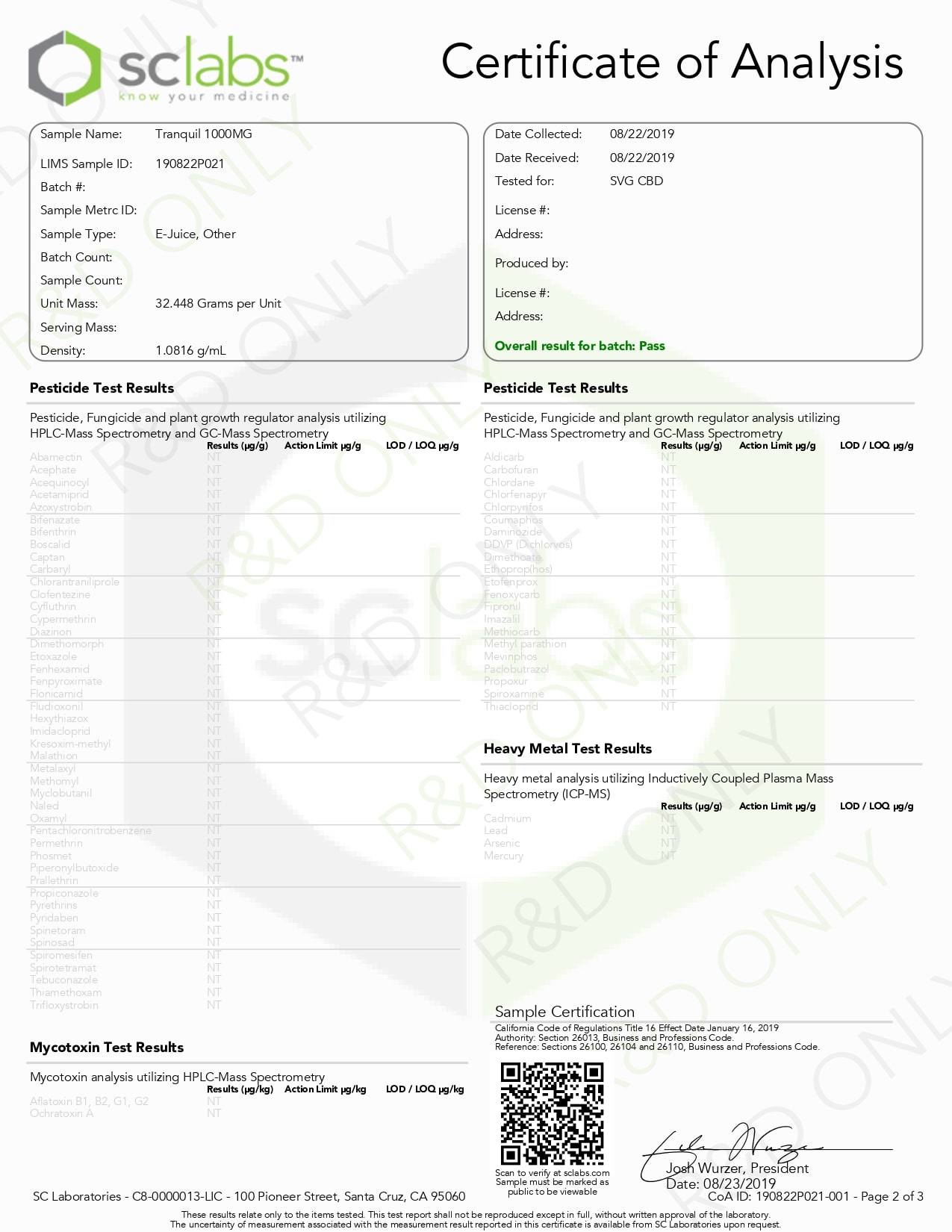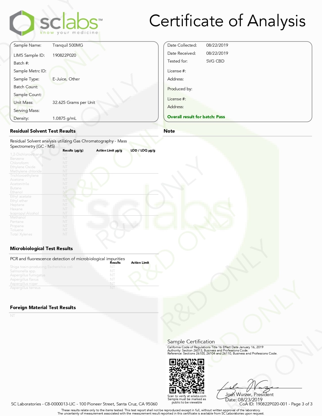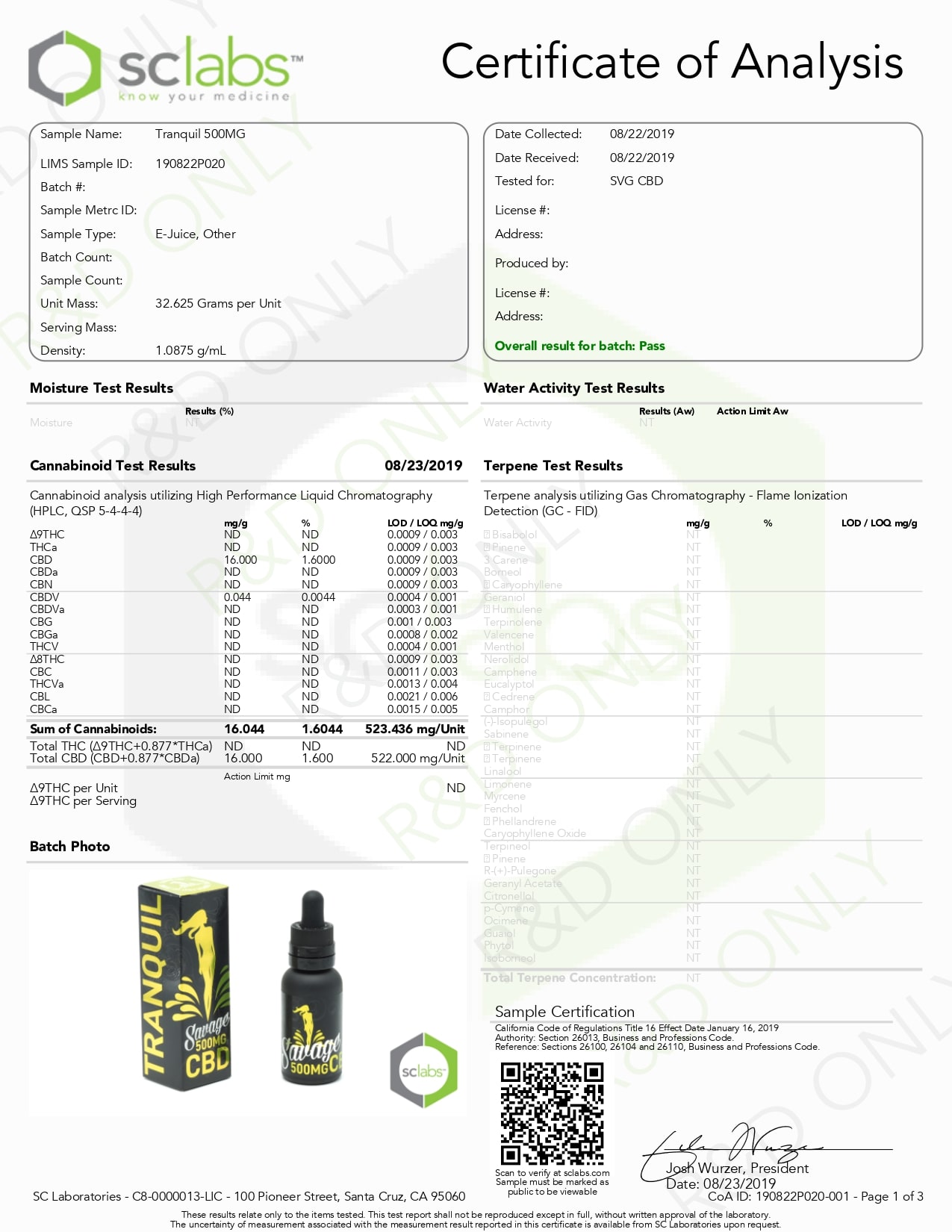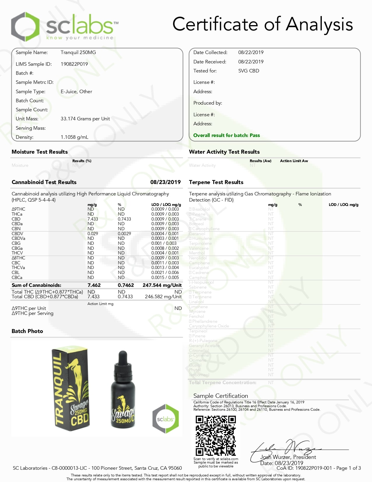SAVAGE Tranquil CBD Vape Juice Lab Report is provided for your best interest in regards to vaping products.