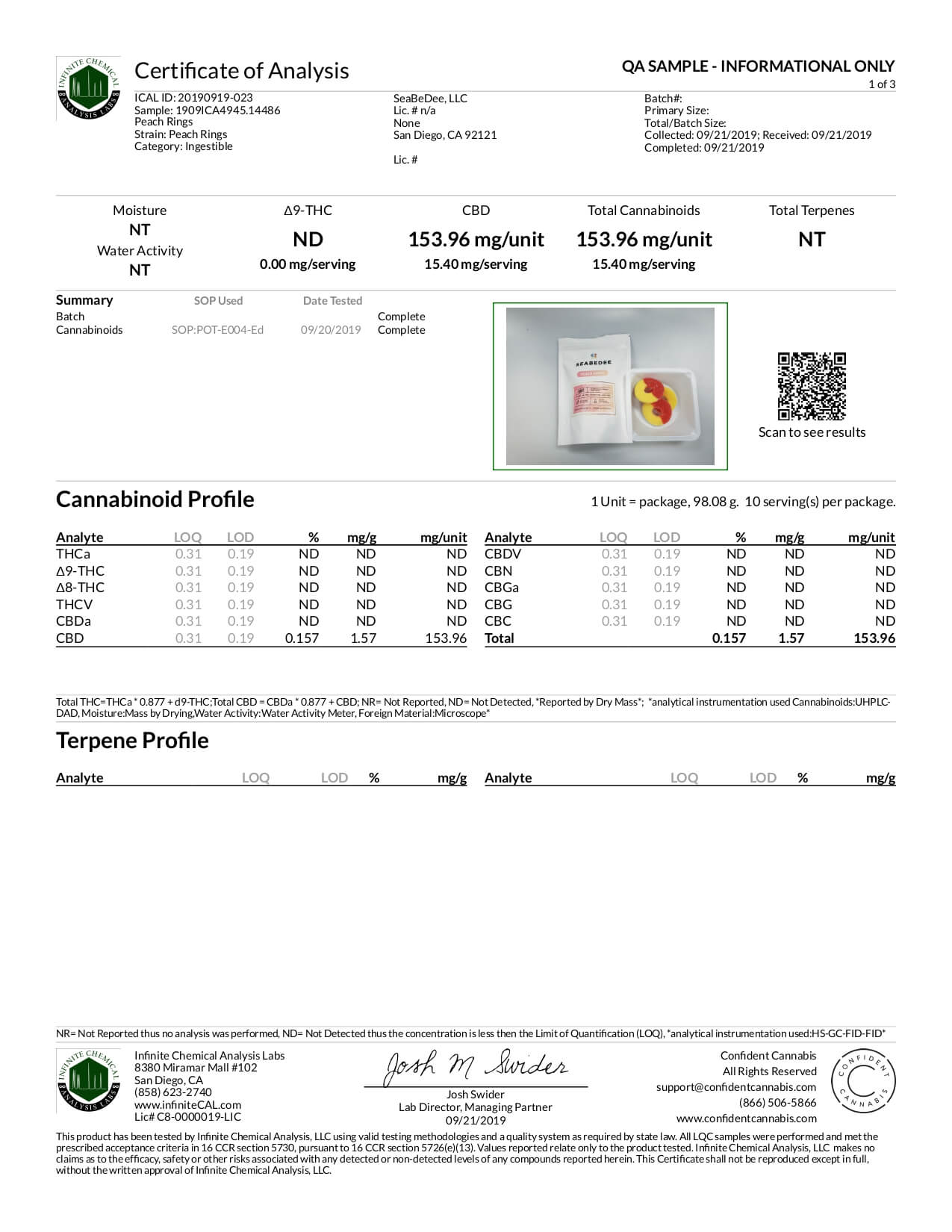 Seabedee CBD Edible Peach Rings Lab Report important details about vaping products.