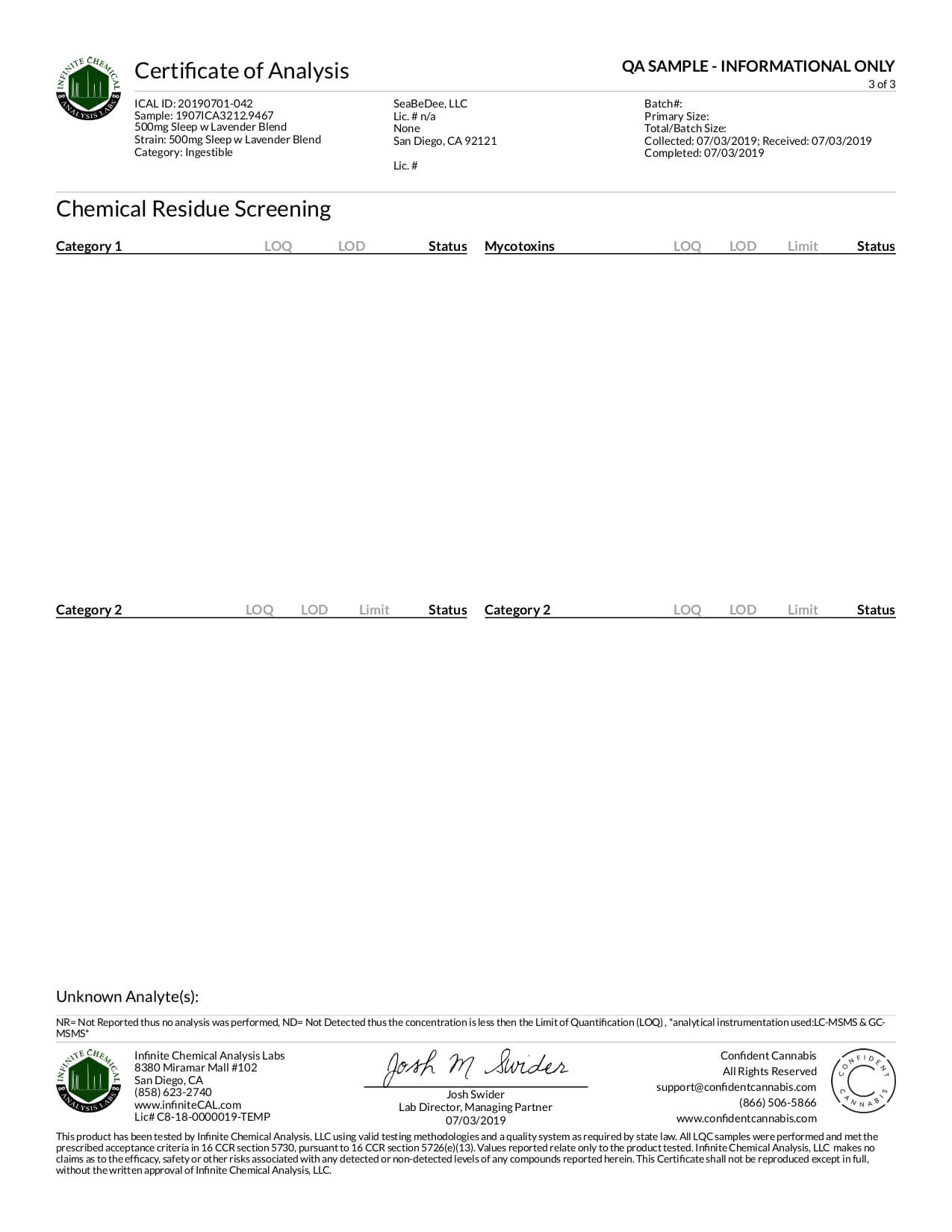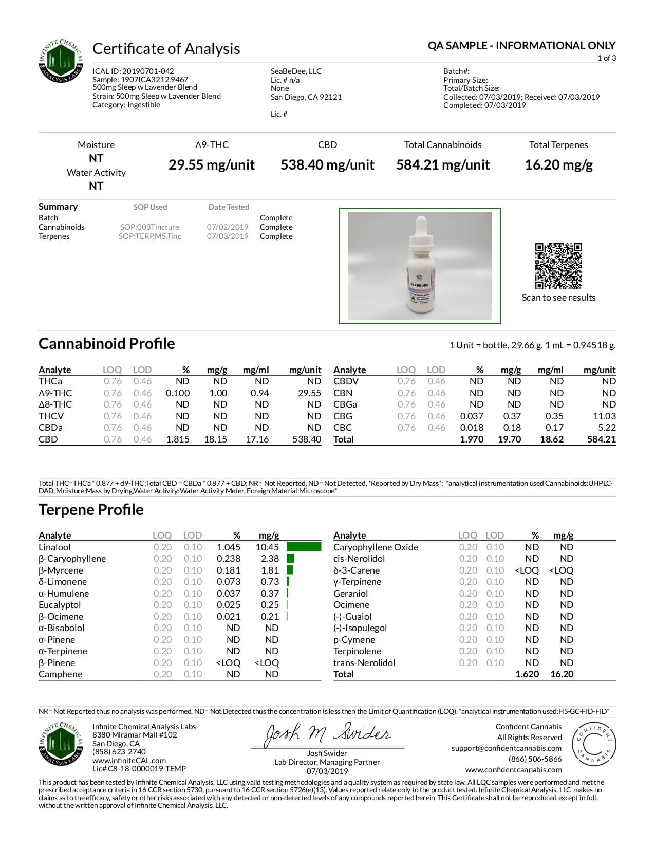 Seabedee CBD Tincture Lavender Sleep Blend 500mg Lab Report