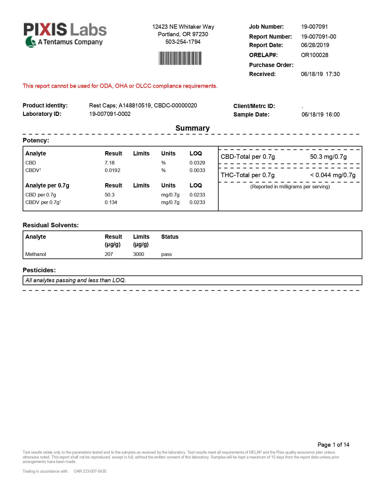 Select CBD Capsule Rest Soft Gel 2 Pack 33.3mg Lab Report