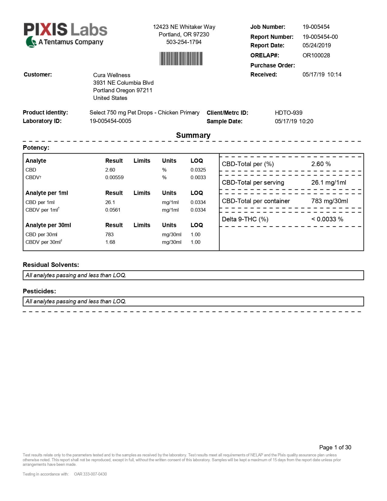 Select CBD Pet Tincture Chicken Lab Report important details about vaping products.