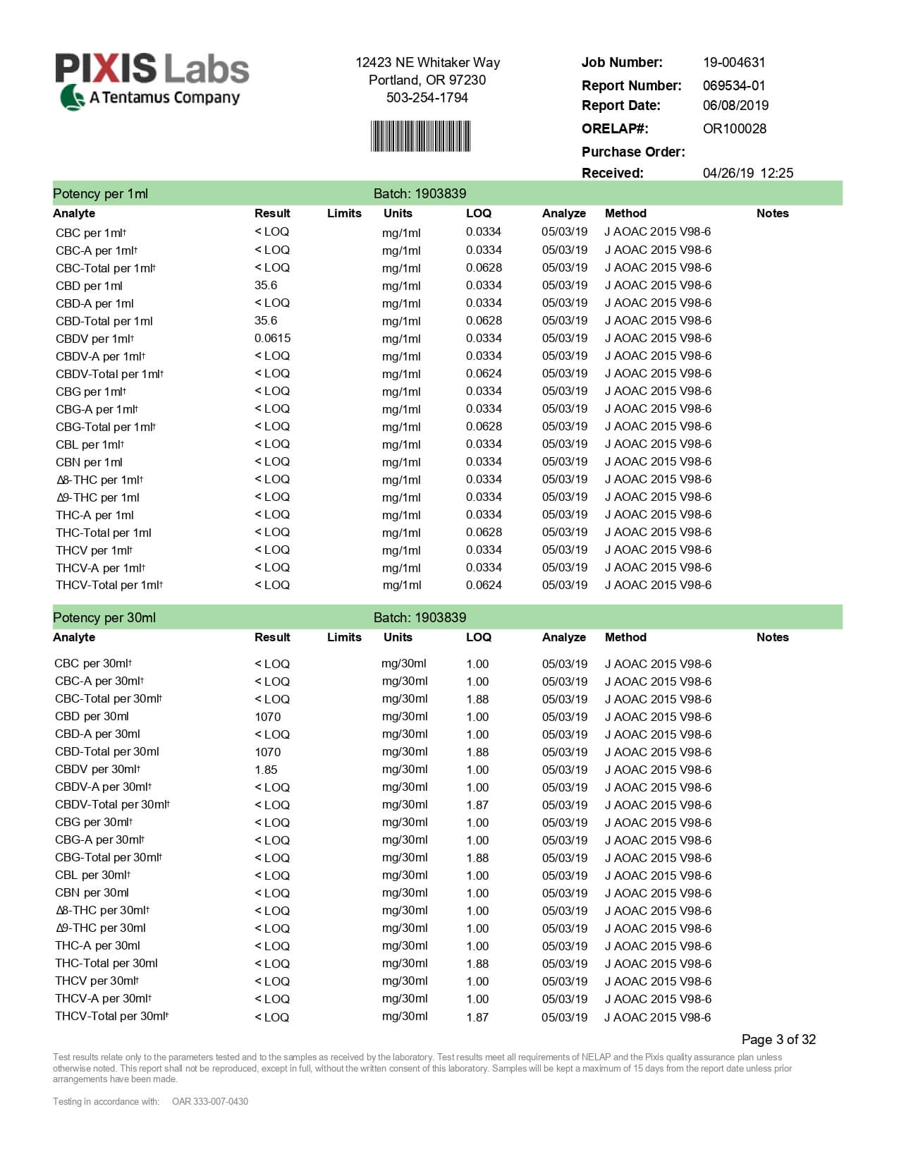 Select CBD Tincture Lemon Ginger Lab Report important details about vaping products.