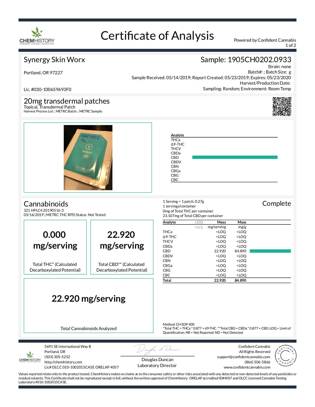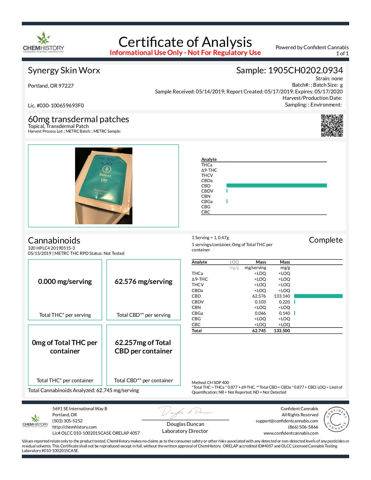Select CBD Topical Patch Lab Report