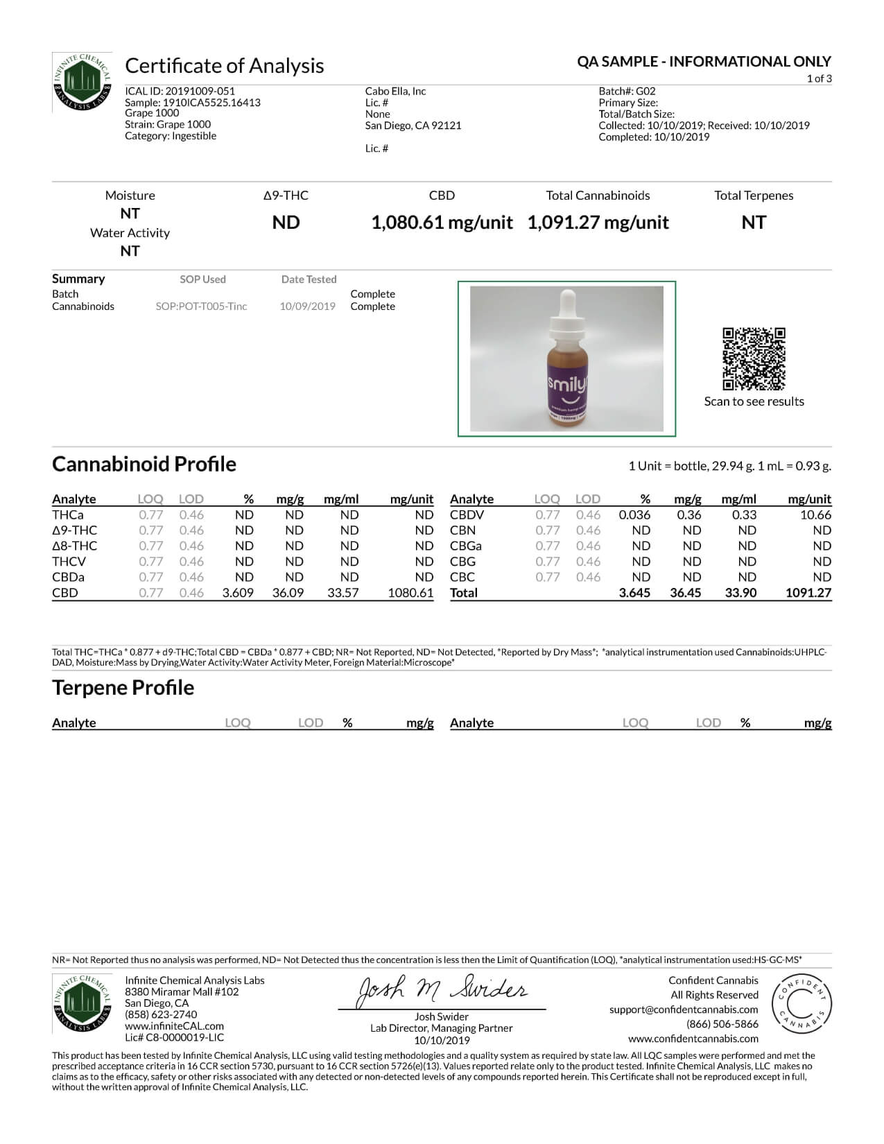 Smilyn CBD Tincture Grape 1000mg Lab Report