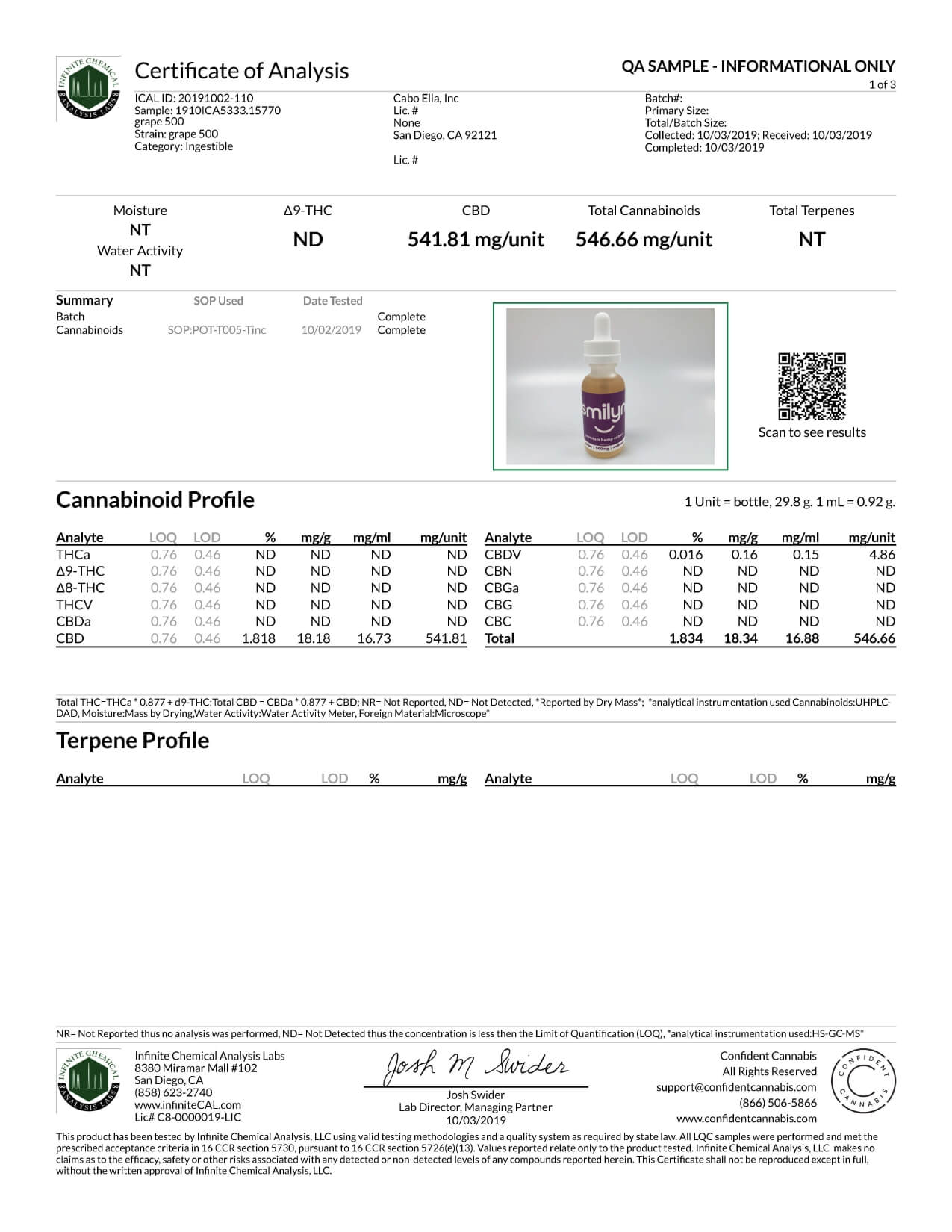 Smilyn CBD Tincture Grape Lab Report