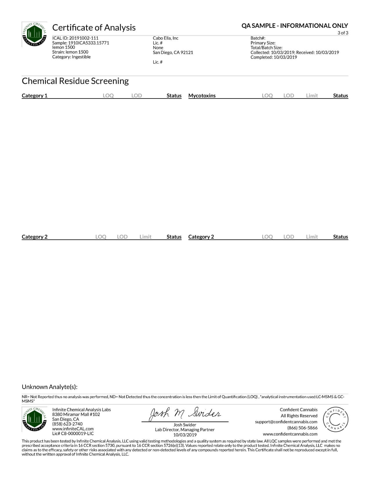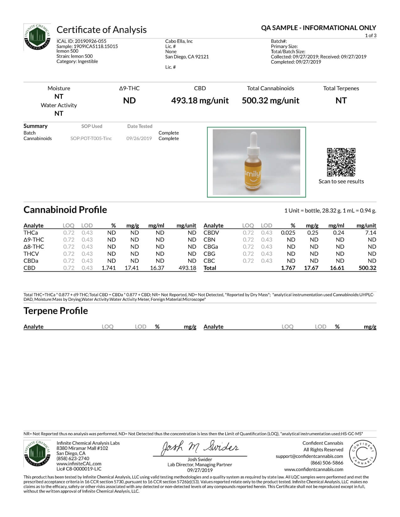 Smilyn CBD Tincture Lemon 500mg Lab Report