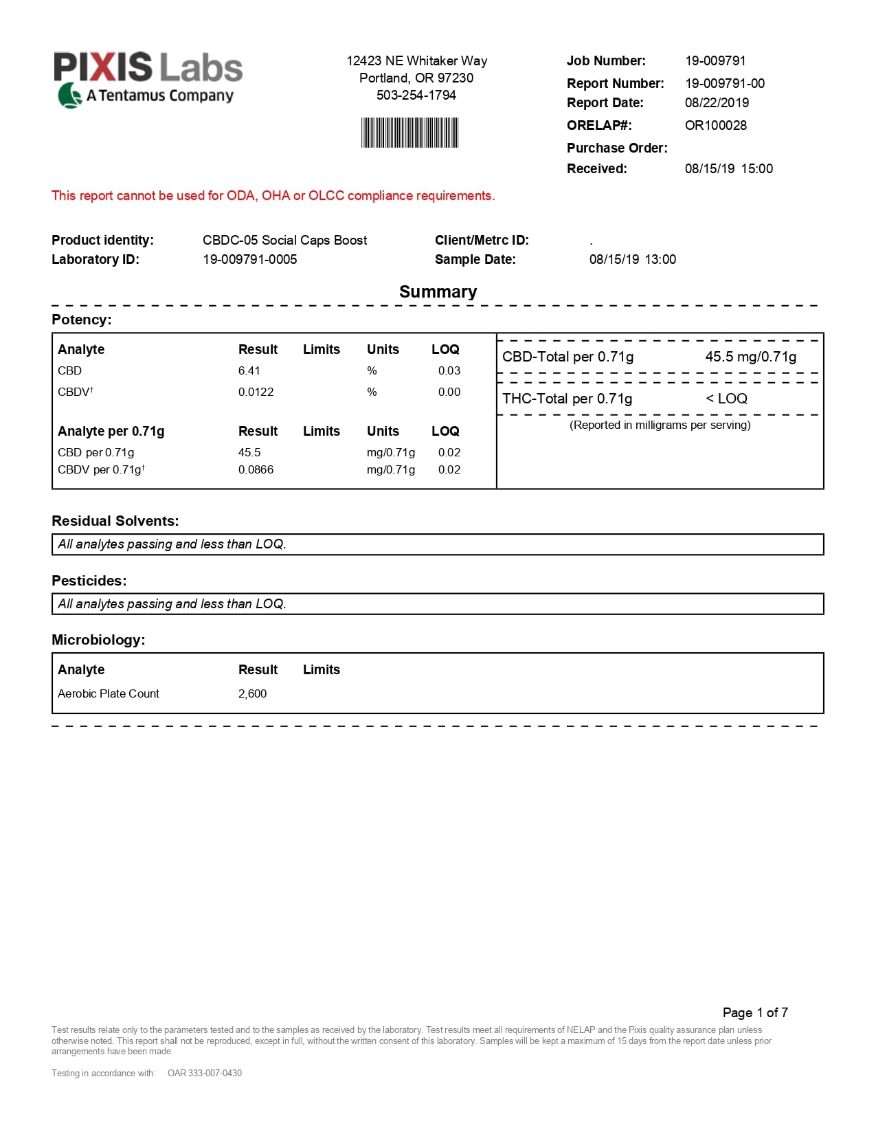 Social CBD Boost CBD Gel Capsules Lab Report important details about vaping products.