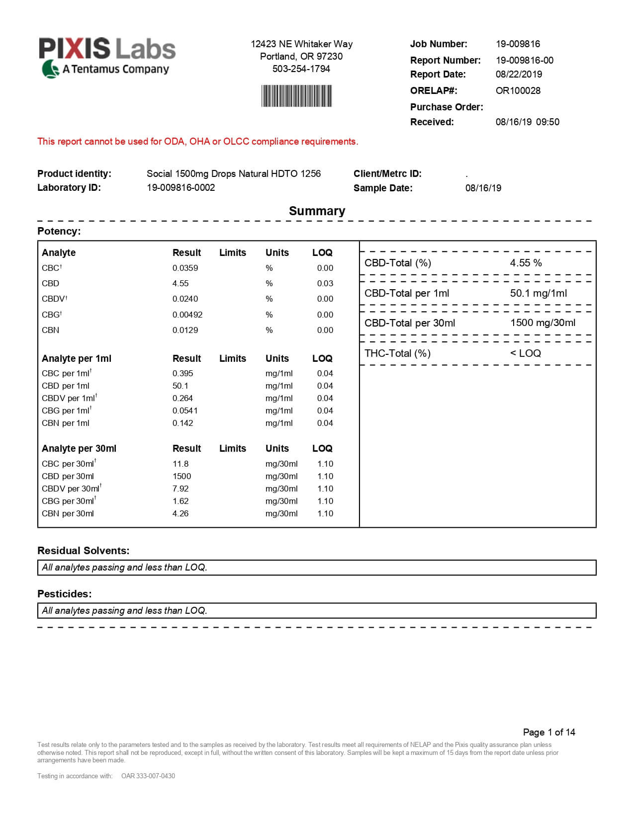 Social CBD Drops Broad Spectrum Natural Flavored 1500mg Lab Report