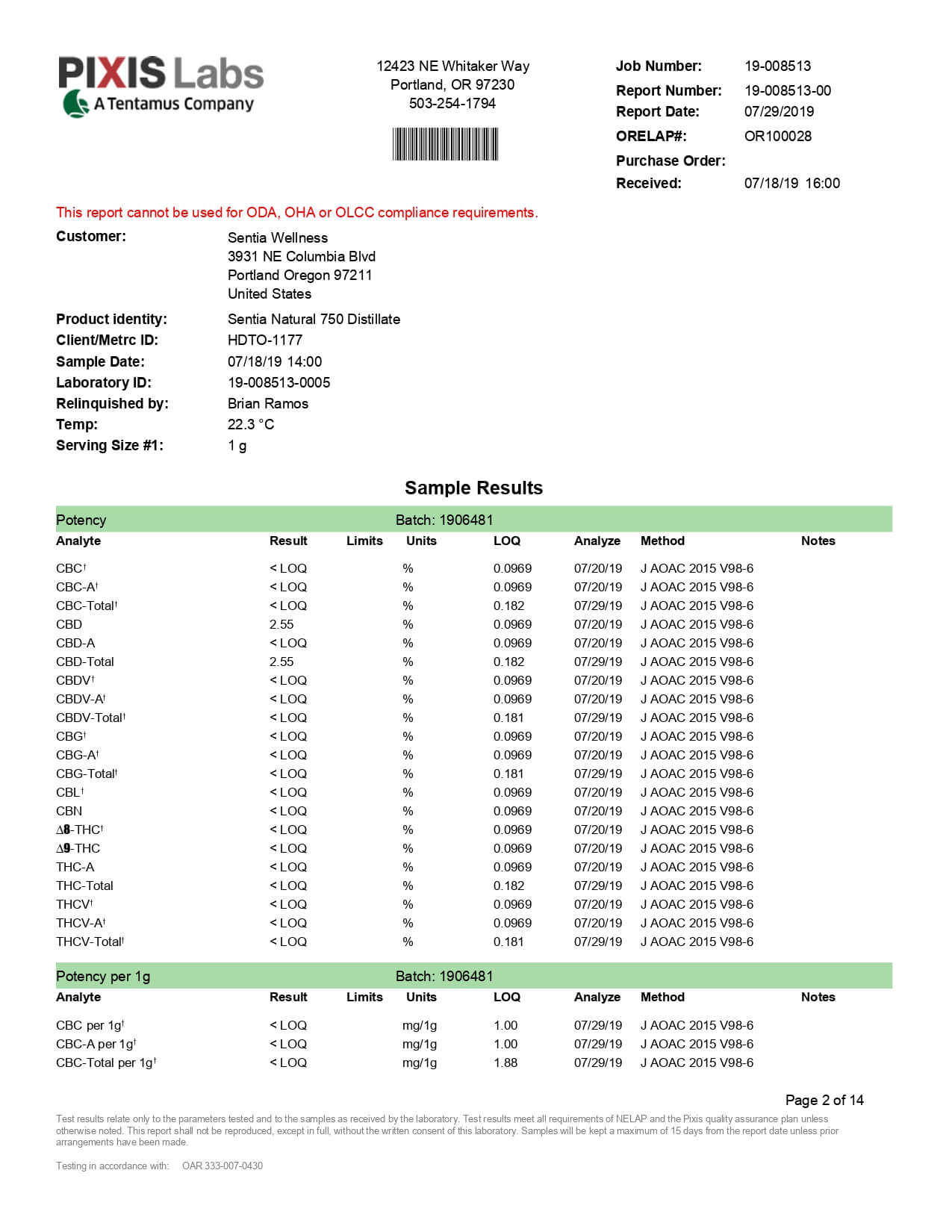 Social CBD Drops Broad Spectrum Natural Flavored 750mg Lab Report