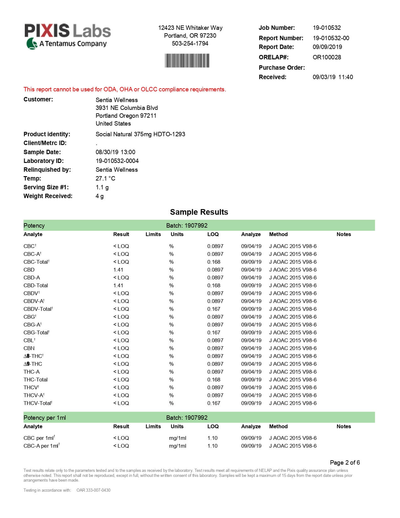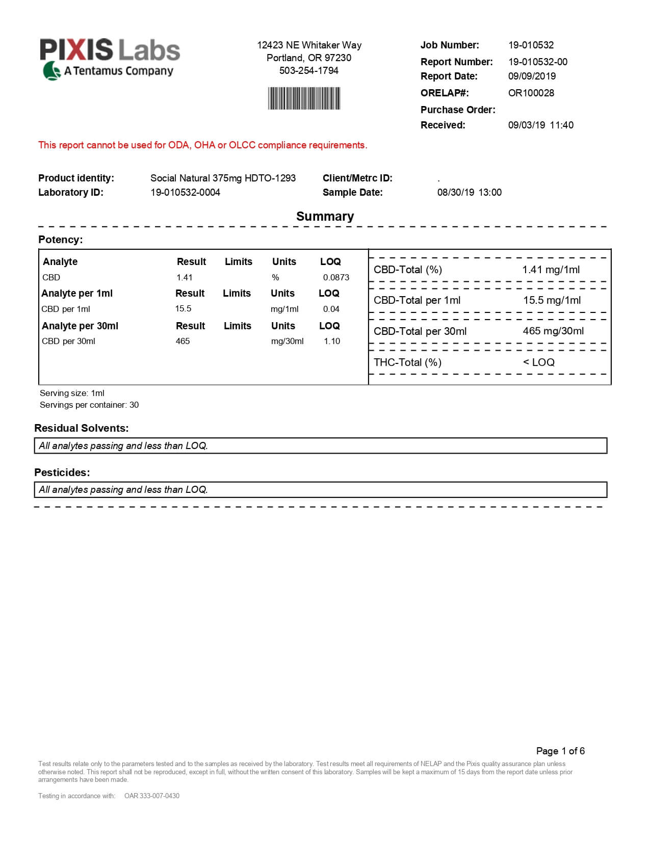 Social CBD Drops Broad Spectrum Natural Flavored 375mg Lab Report
