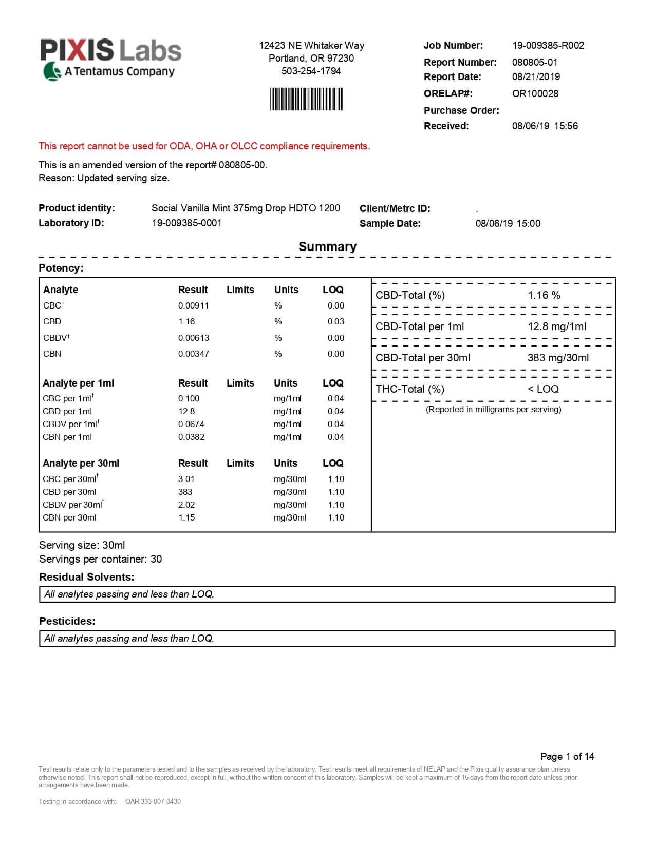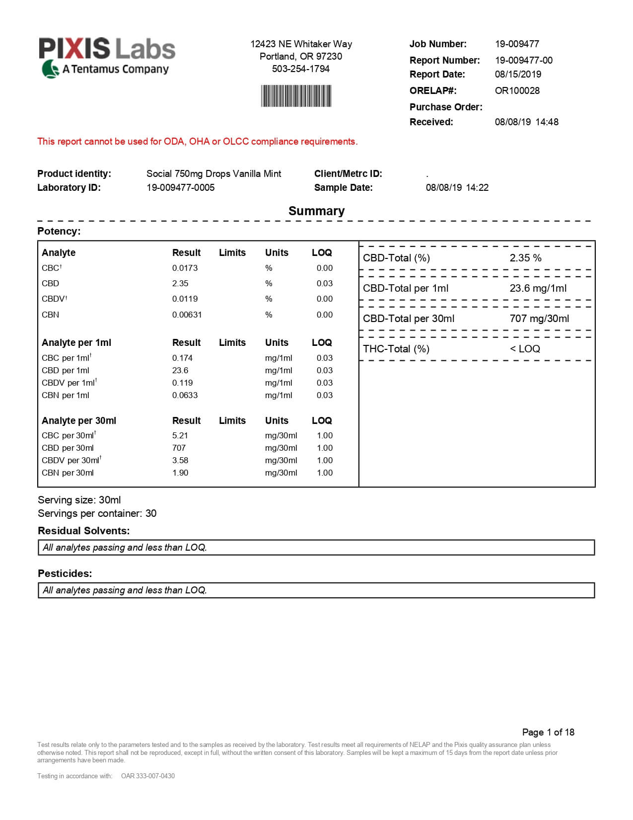 Social CBD Drops Broad Spectrum Pomegranate Tea Lab Report