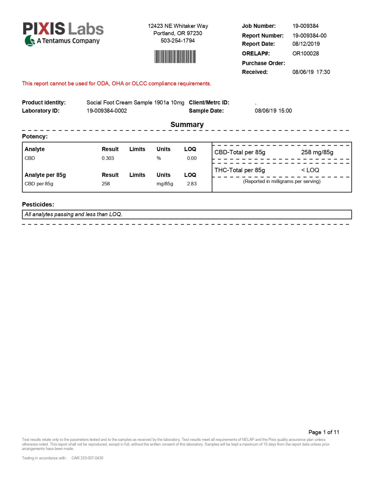Social CBD Foot Renewal Cream Lab Report