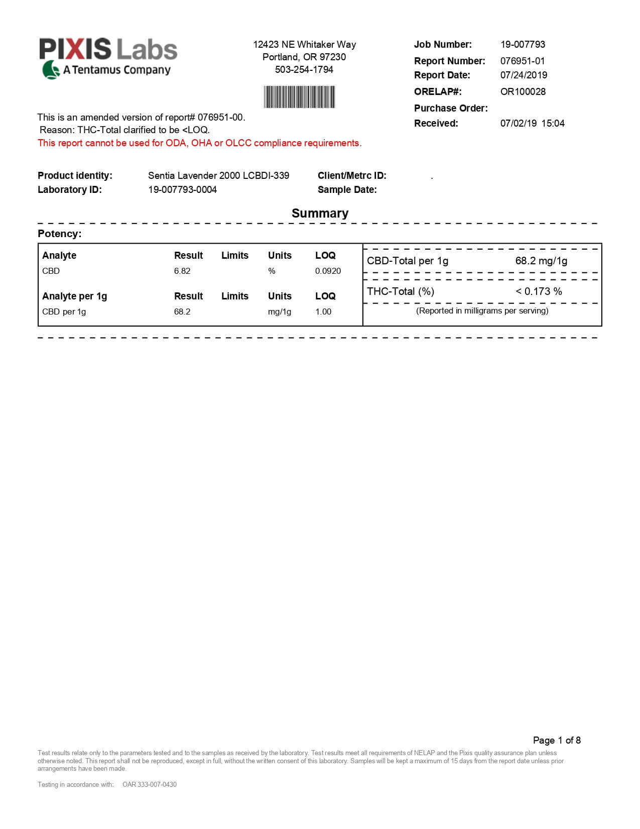 Social CBD Isolate Drops Lavender 2000mg Lab Report