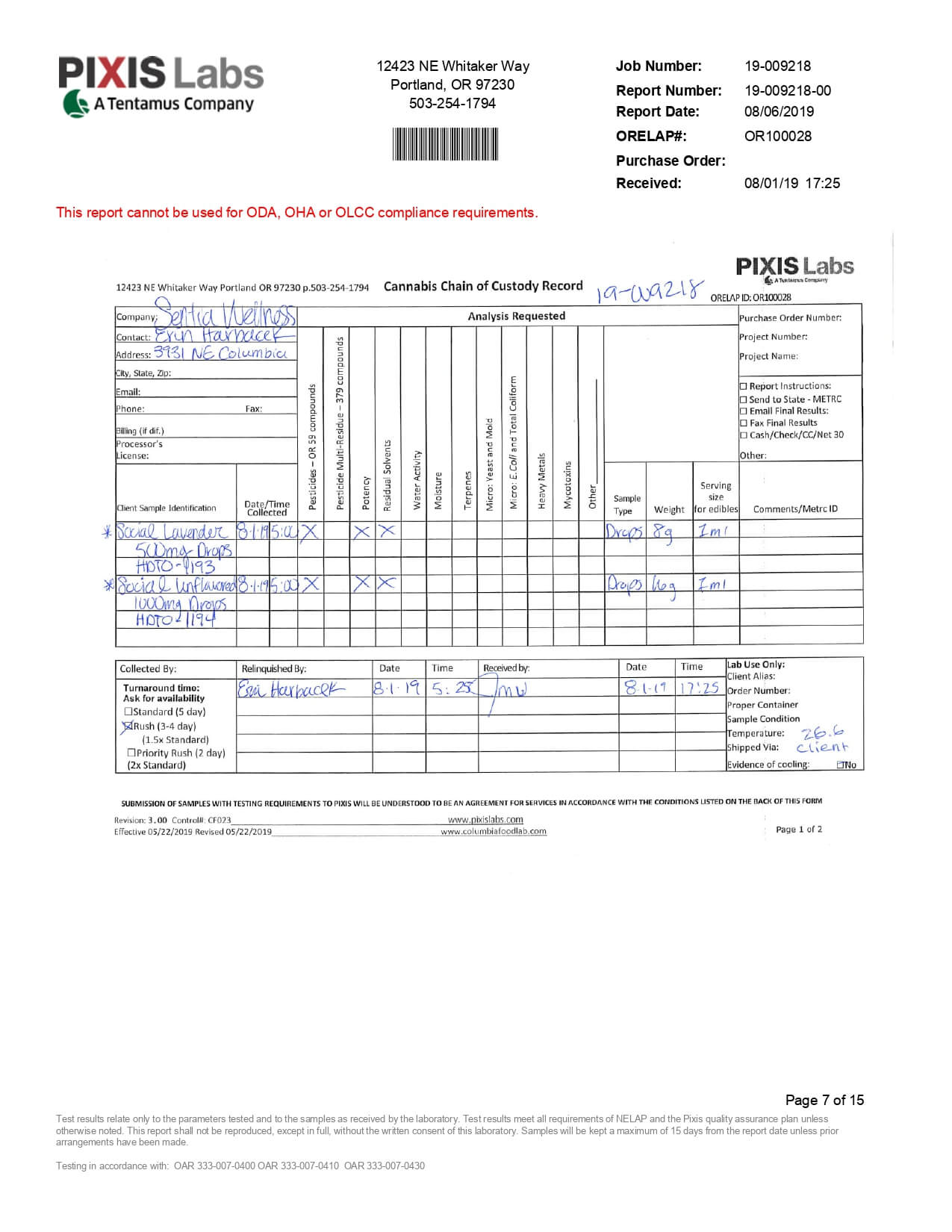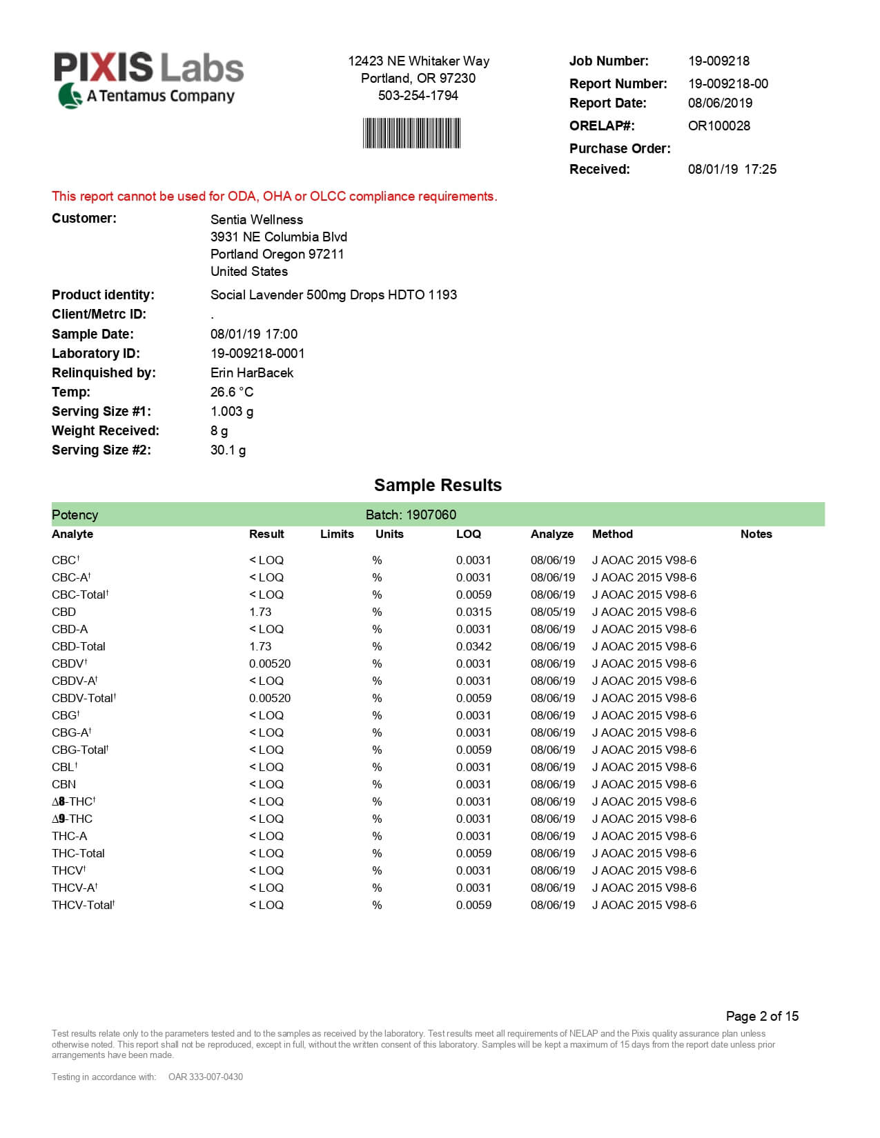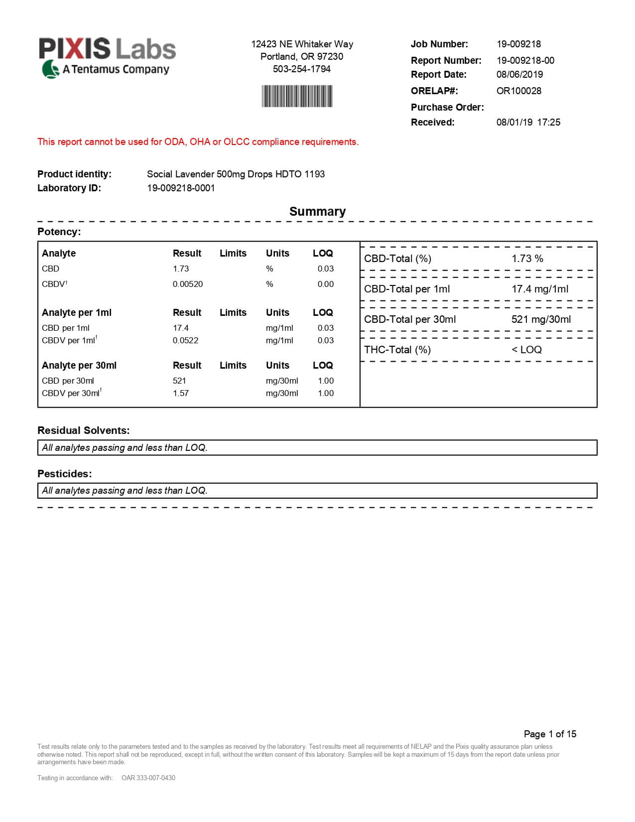 Social CBD Isolate Drops Lavender 500mg Lab Report