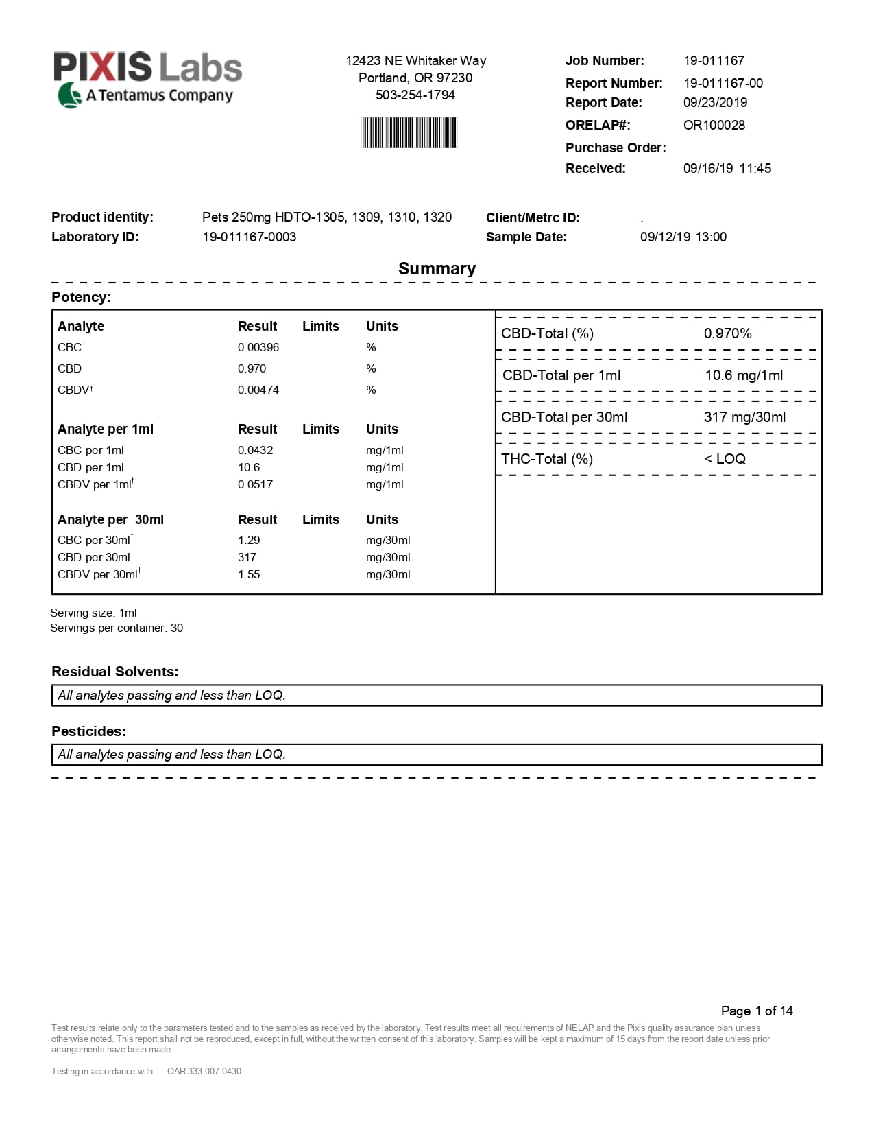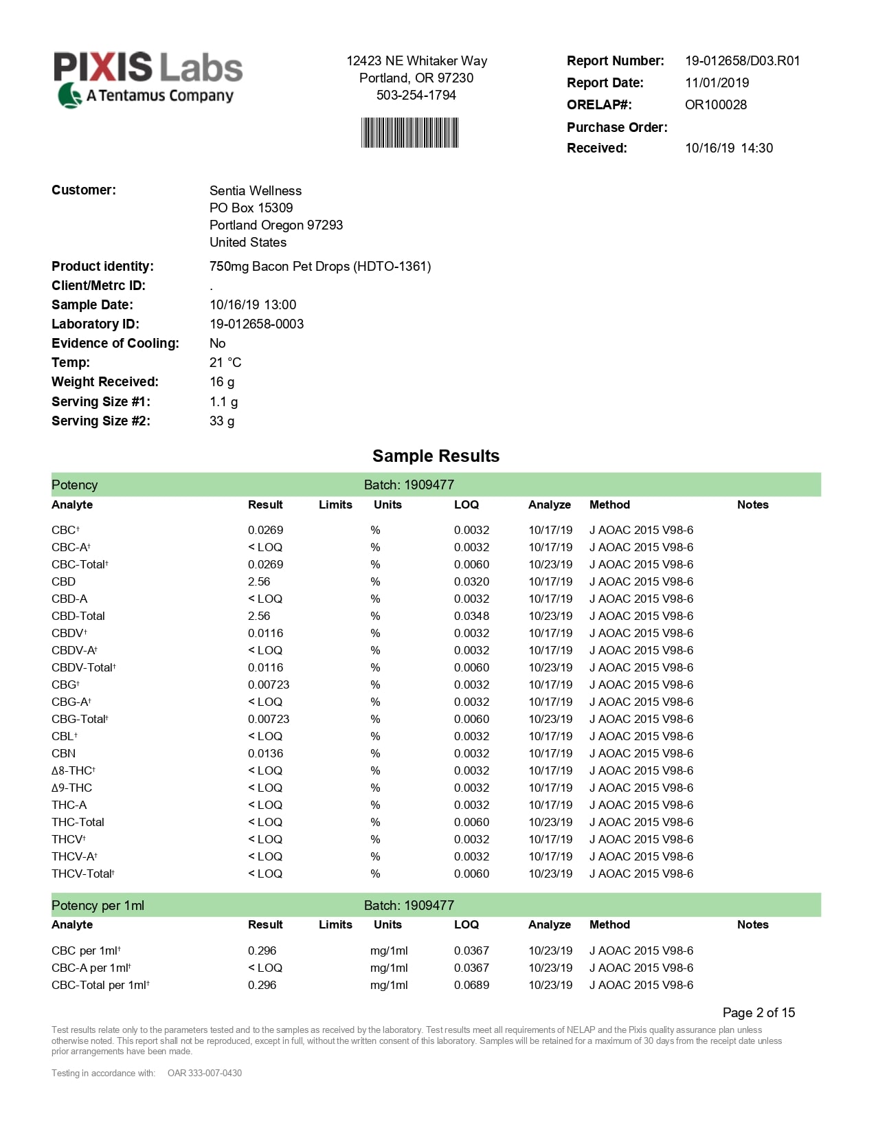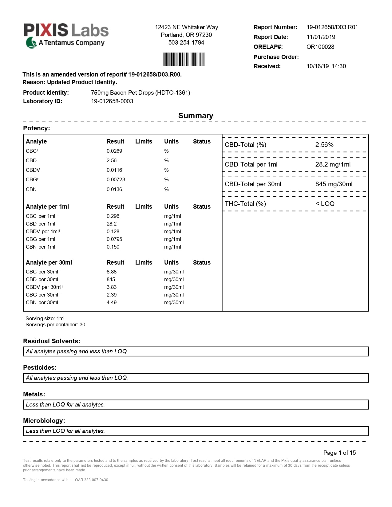 Social CBD Pets Bacon Broad Spectrum Drops Lab Report