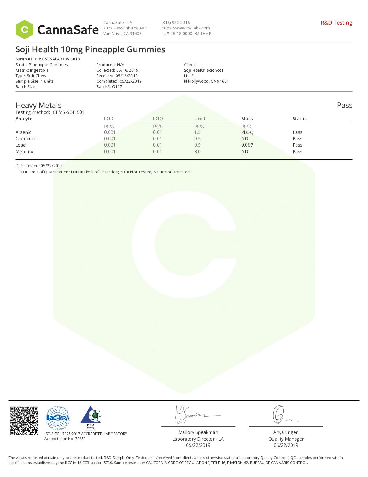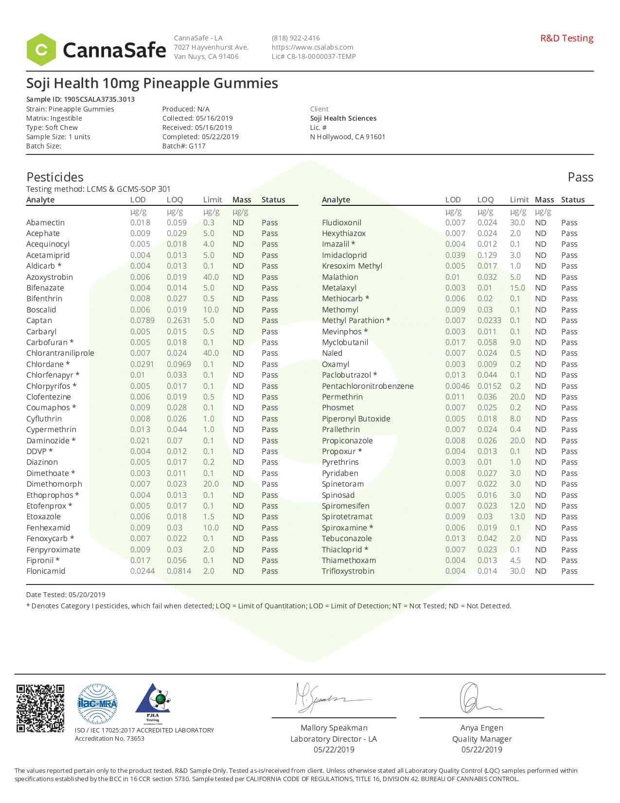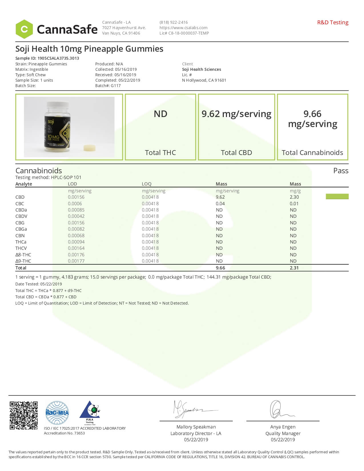 Soji Health CBD Edible Pineapple Gummies Lab Report