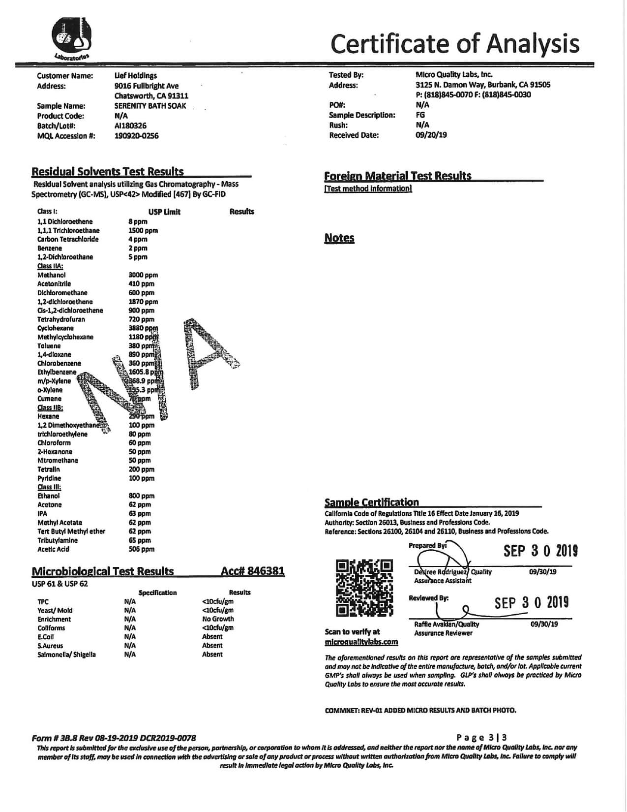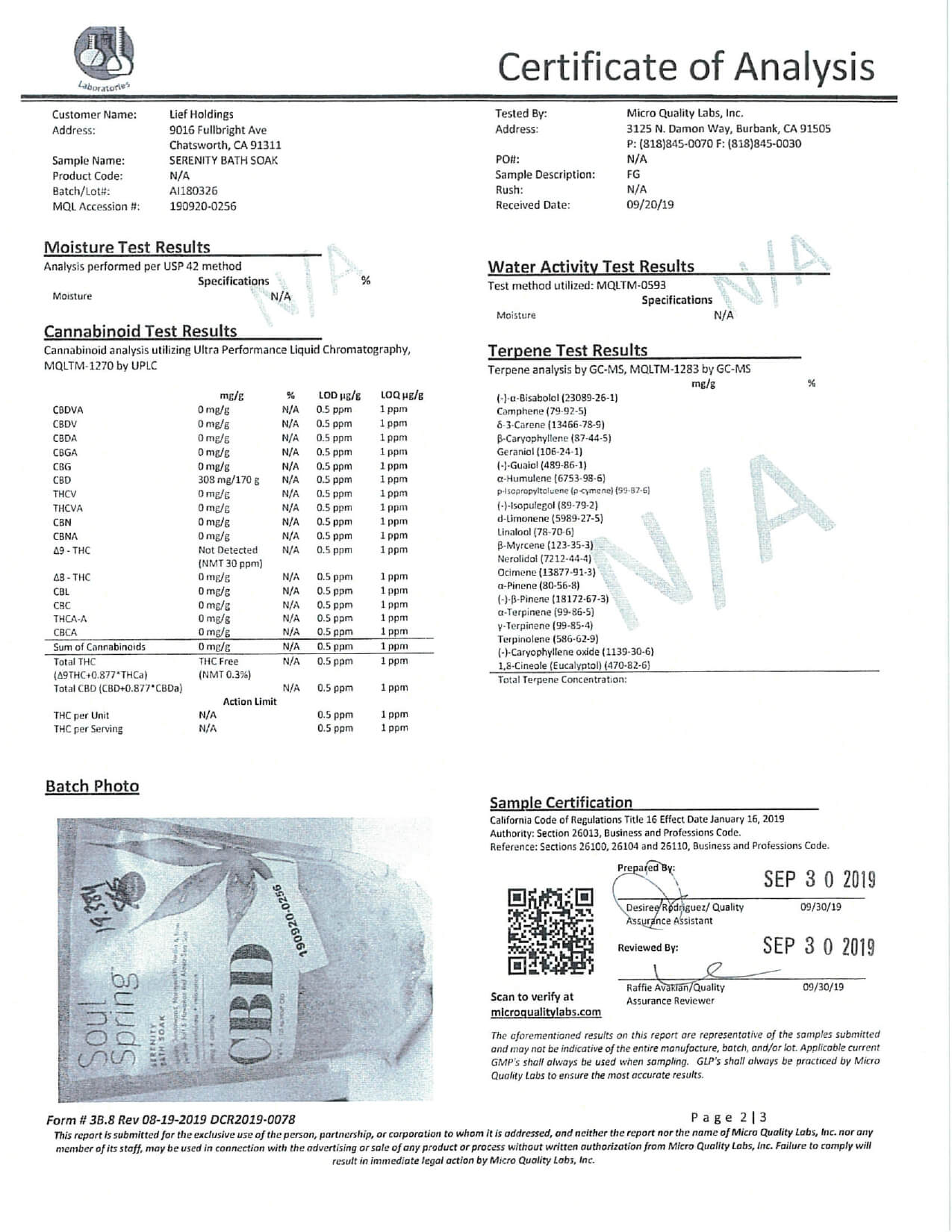 SoulSpring CBD Bath Serenity Bath Soak Lab Report important details about vaping products.