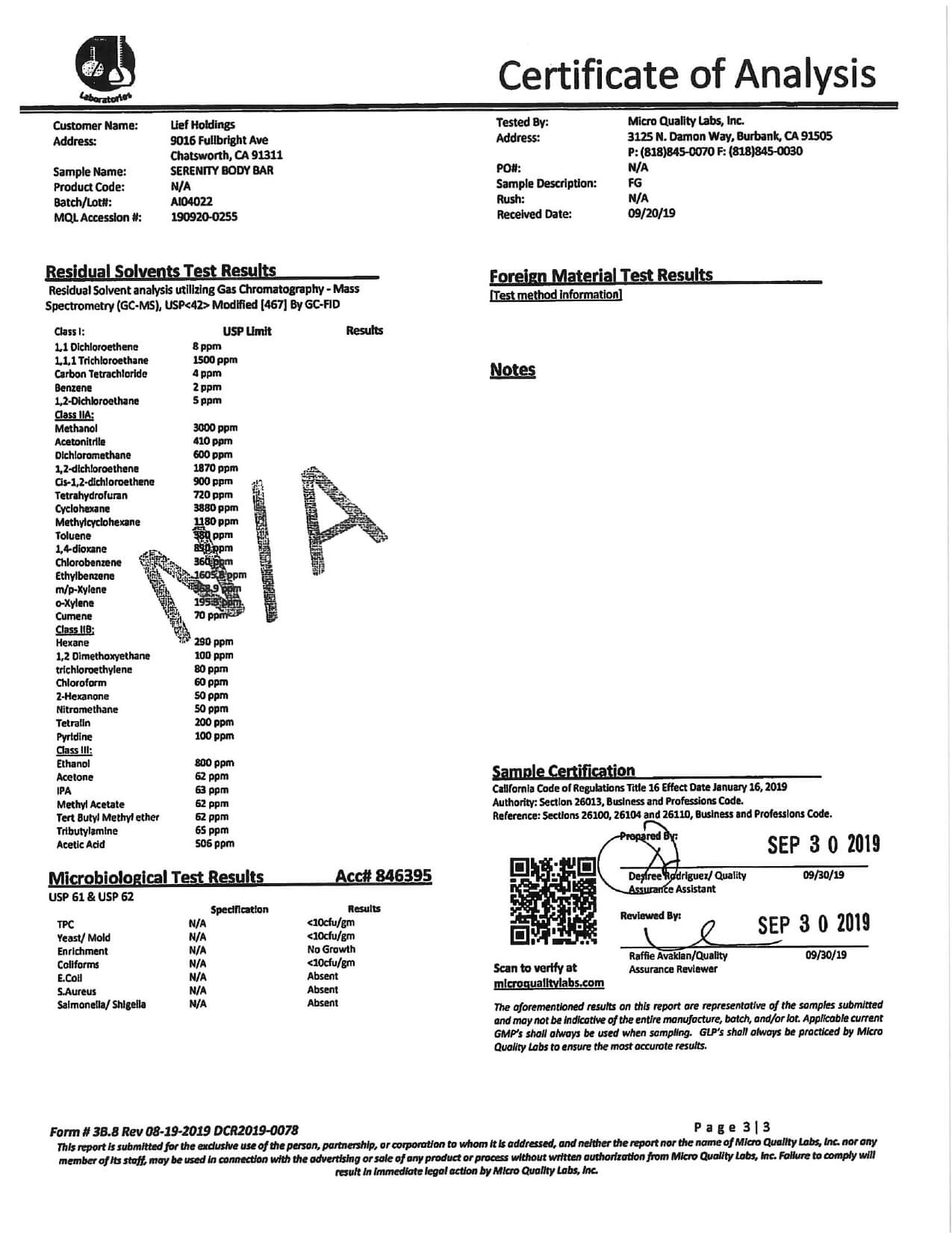 SoulSpring CBD Bath Serenity Body Bar Lab Report important details about vaping products.