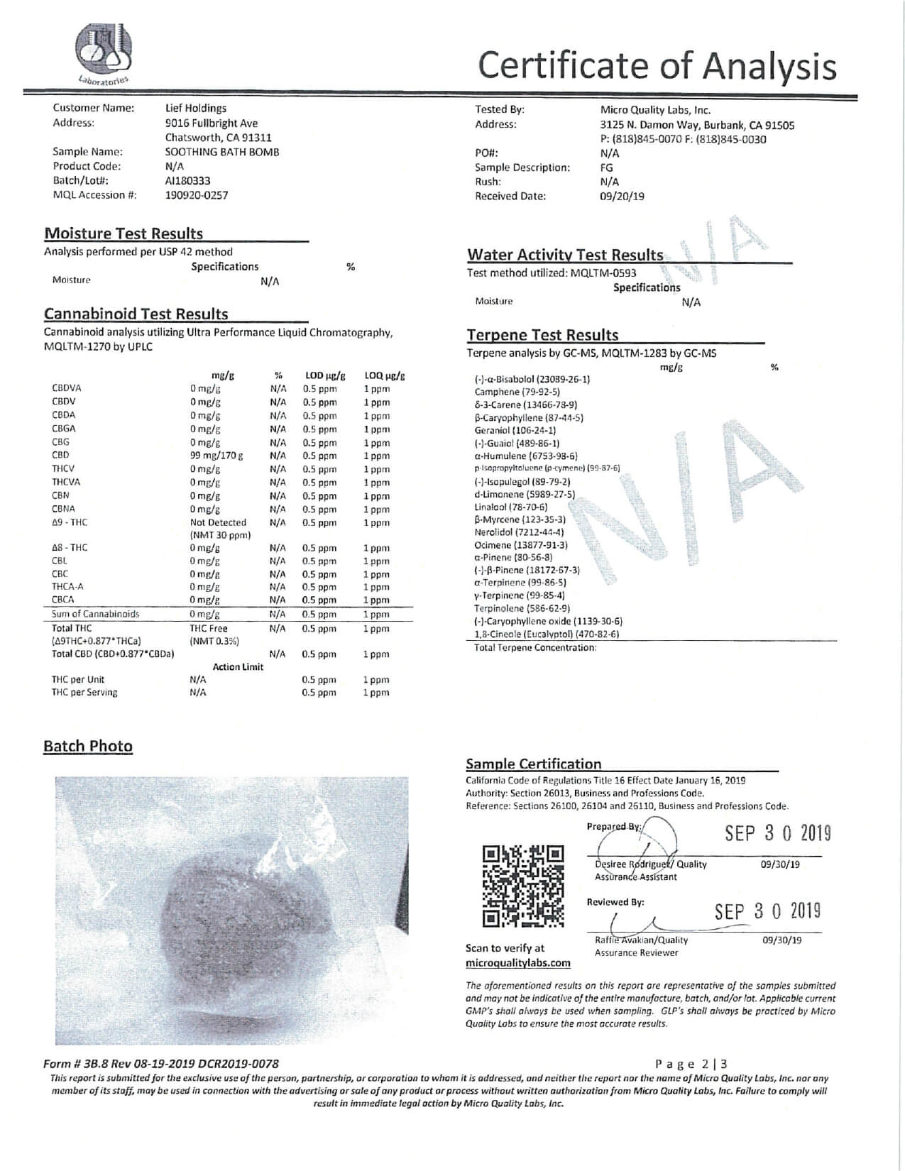 SoulSpring CBD Bath Soothing Bath Bomb Lab Report