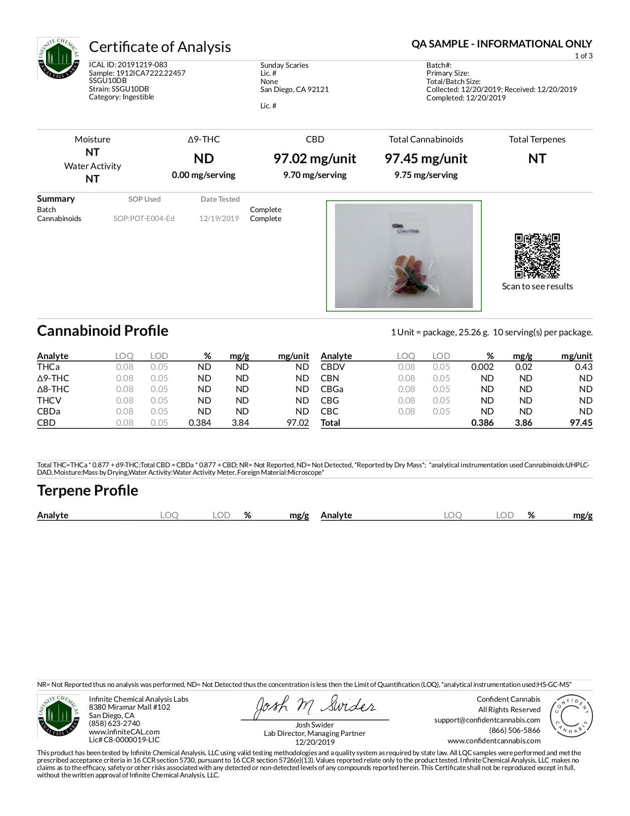 Sunday Scaries CBD Edible Broad Spectrum Gummies w/Vitamins B12 & D3 Lab Report