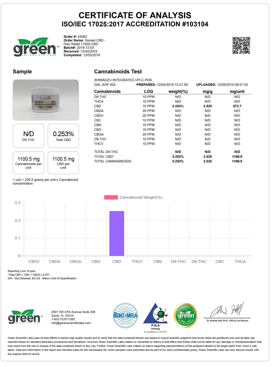 Sunset CBD Topical Pain-Relief Cream Lab Report