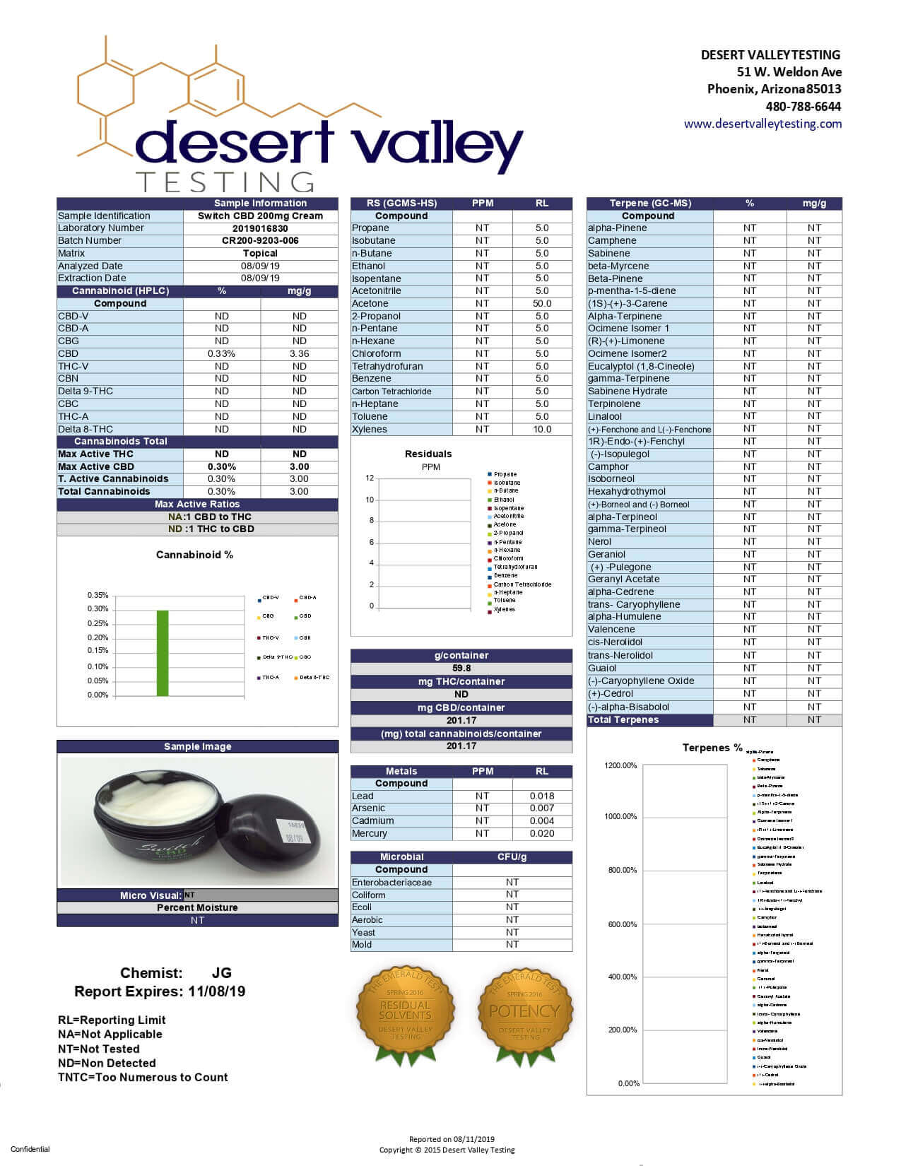 Switch CBD Body Cream Lab Report important details about vaping products.