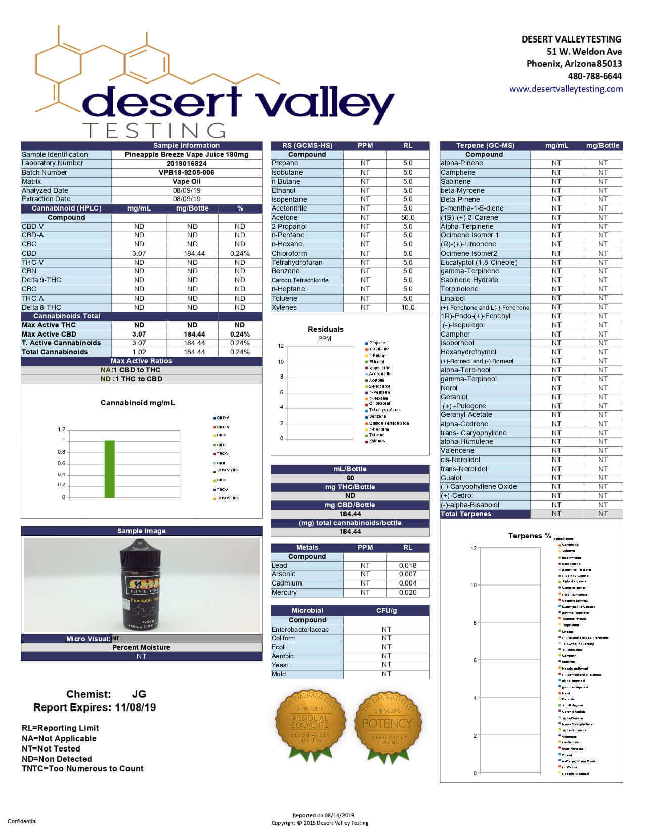 Switch CBD Vape Pineapple Breeze 180mg Lab Report