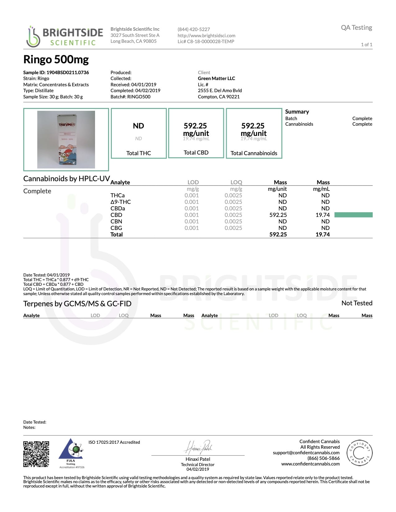 Takumi by Yami Vapor CBD Vape Tincture Ringo Lab Report