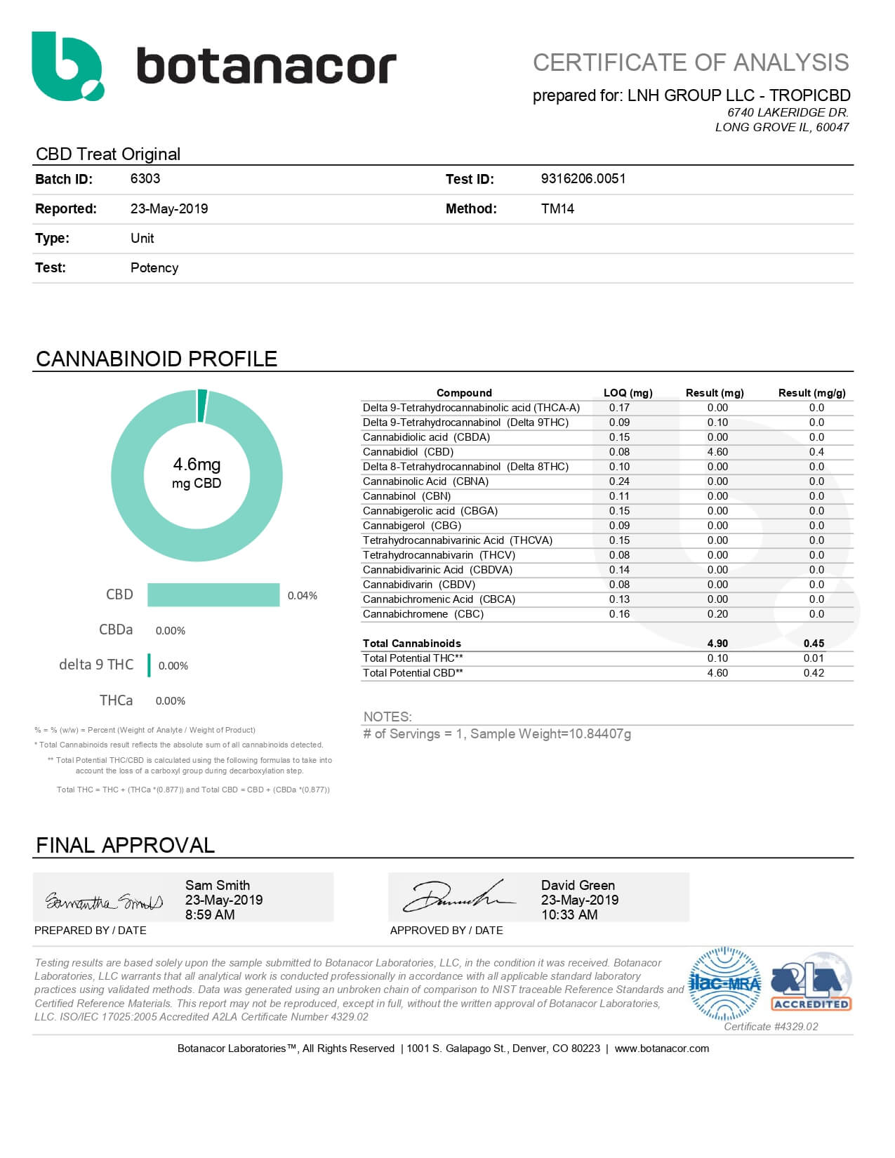 TropiCBD Pet Edible Original Dog Treats Lab Report