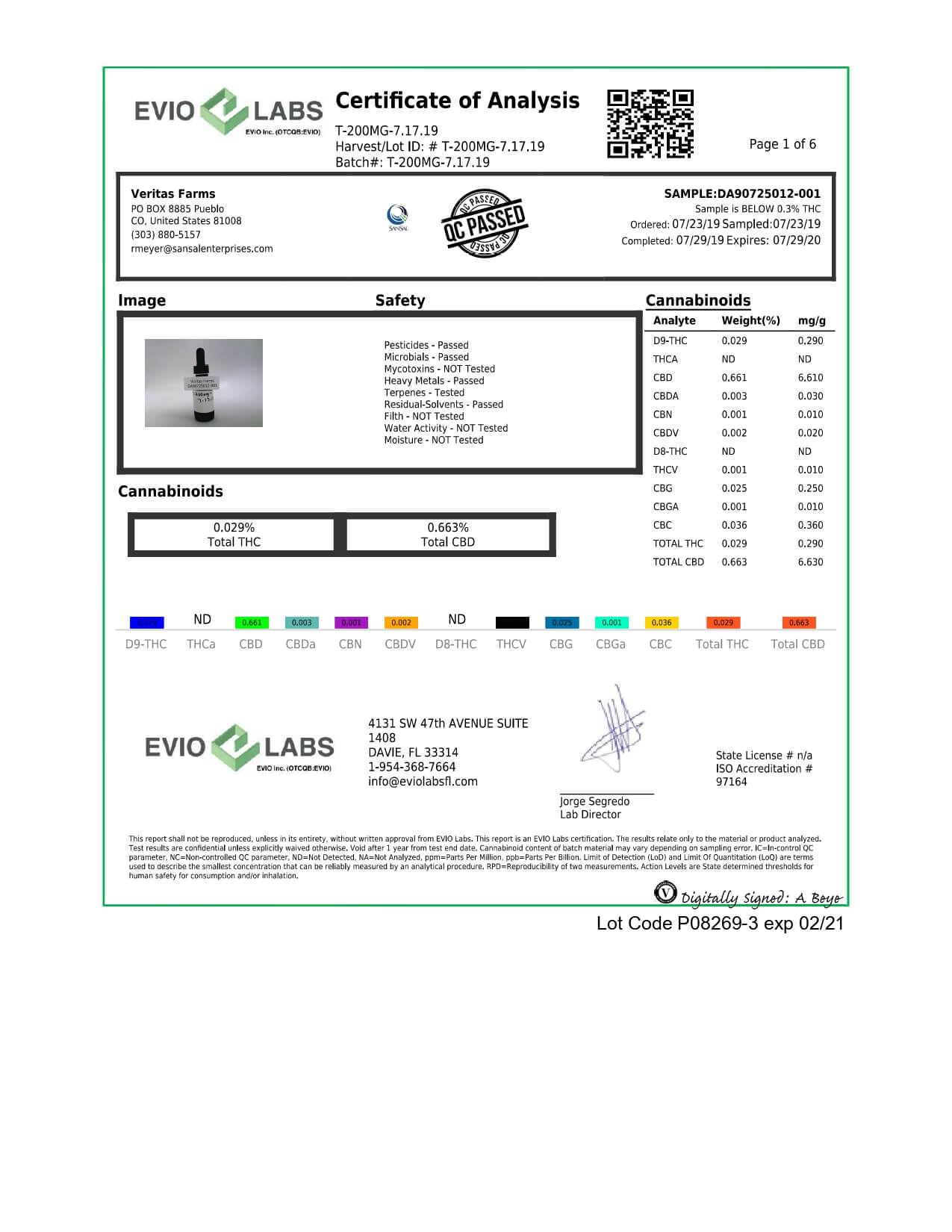 Veritas Farms CBD Pet Tincture Full Spectrum Tuna Lab Report important details about vaping products.