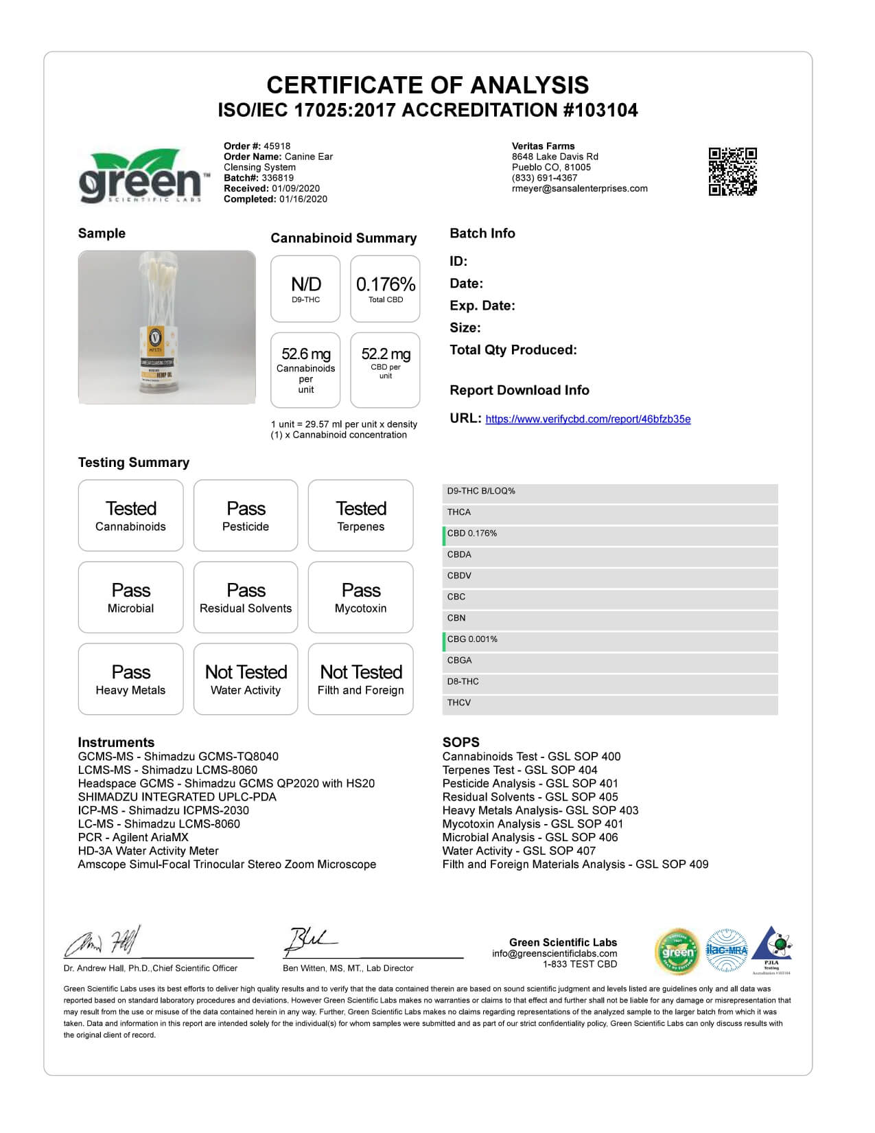 Veritas Farms CBD Pet Topical Full Spectrum Ear Cleansing System Lab Report important details about vaping products.