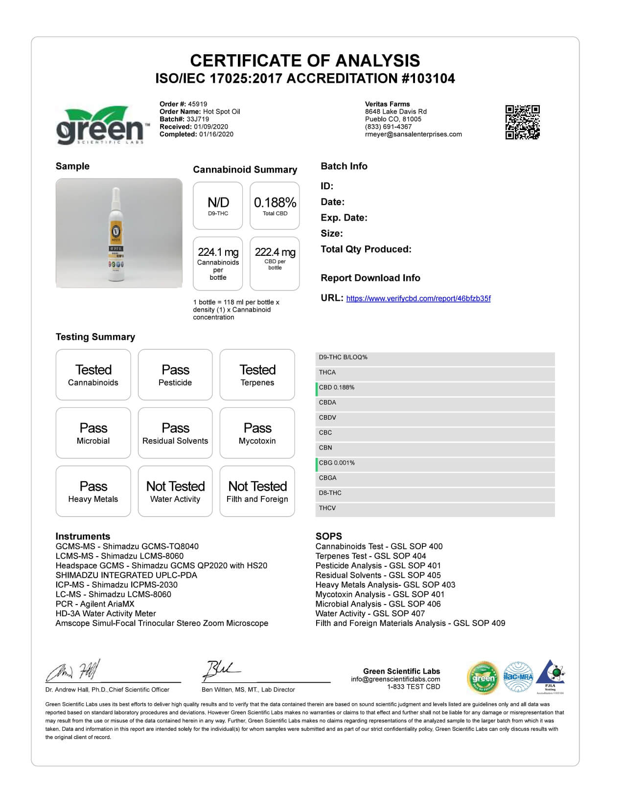 Veritas Farms CBD Pet Topical Full Spectrum Hot Spot Oil Lab Report important details about vaping products.