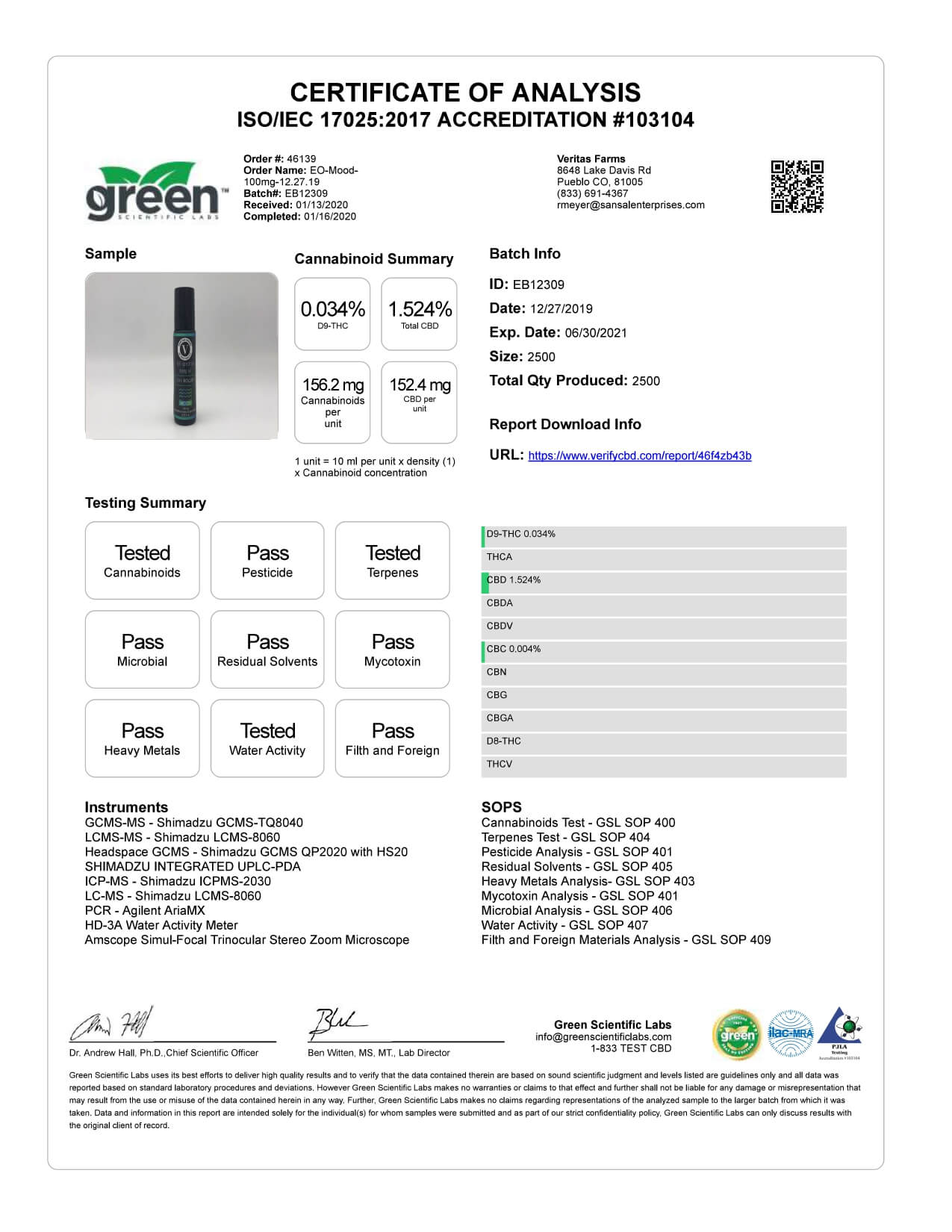 Veritas Farms CBD Topical Full Spectrum Mood Roll On Lab Report important details about vaping products.