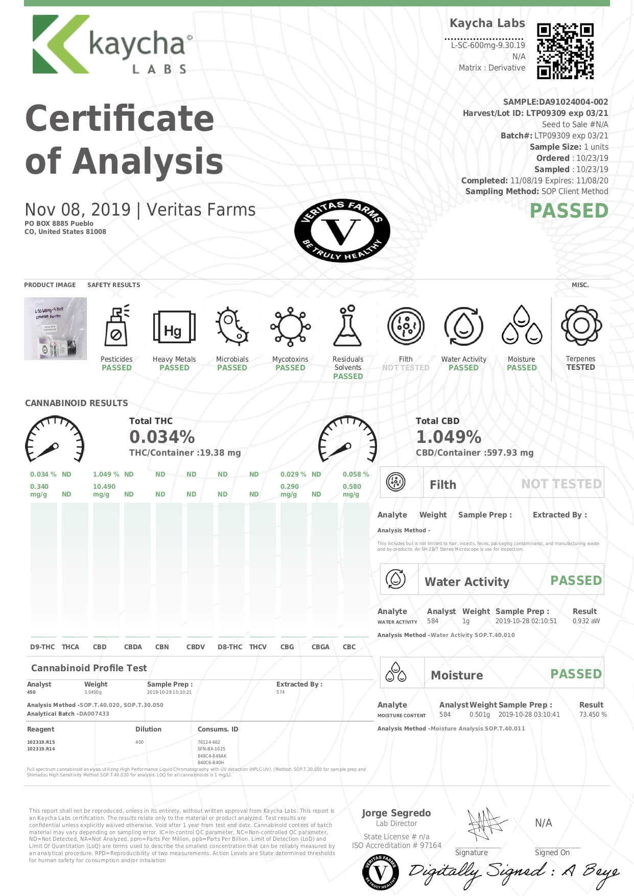 Veritas Farms CBD Topical Full Spectrum Sports Cream Lab Report important details about vaping products.