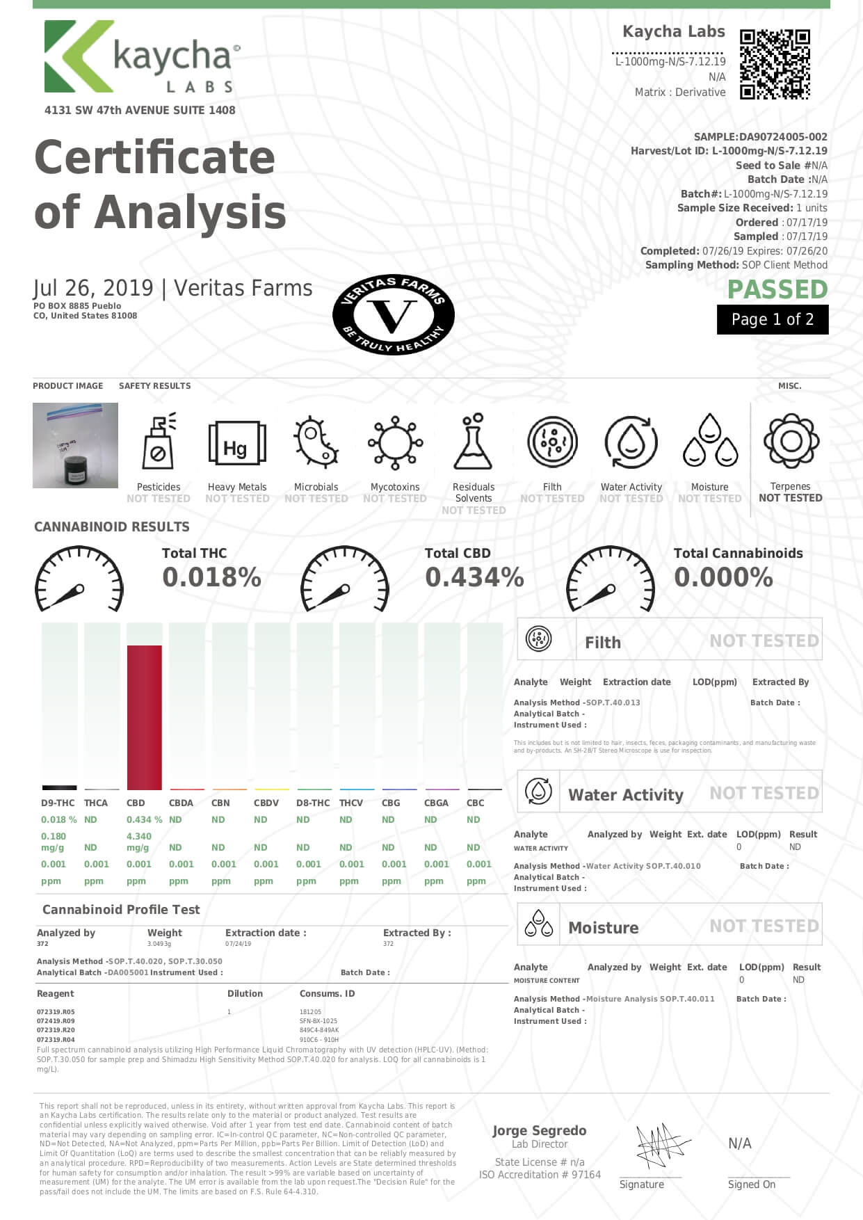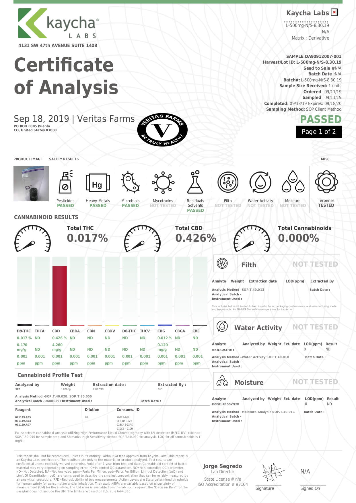 Veritas Farms CBD Topical Full Spectrum Unscented Lotion Lab Report important details about vaping products.