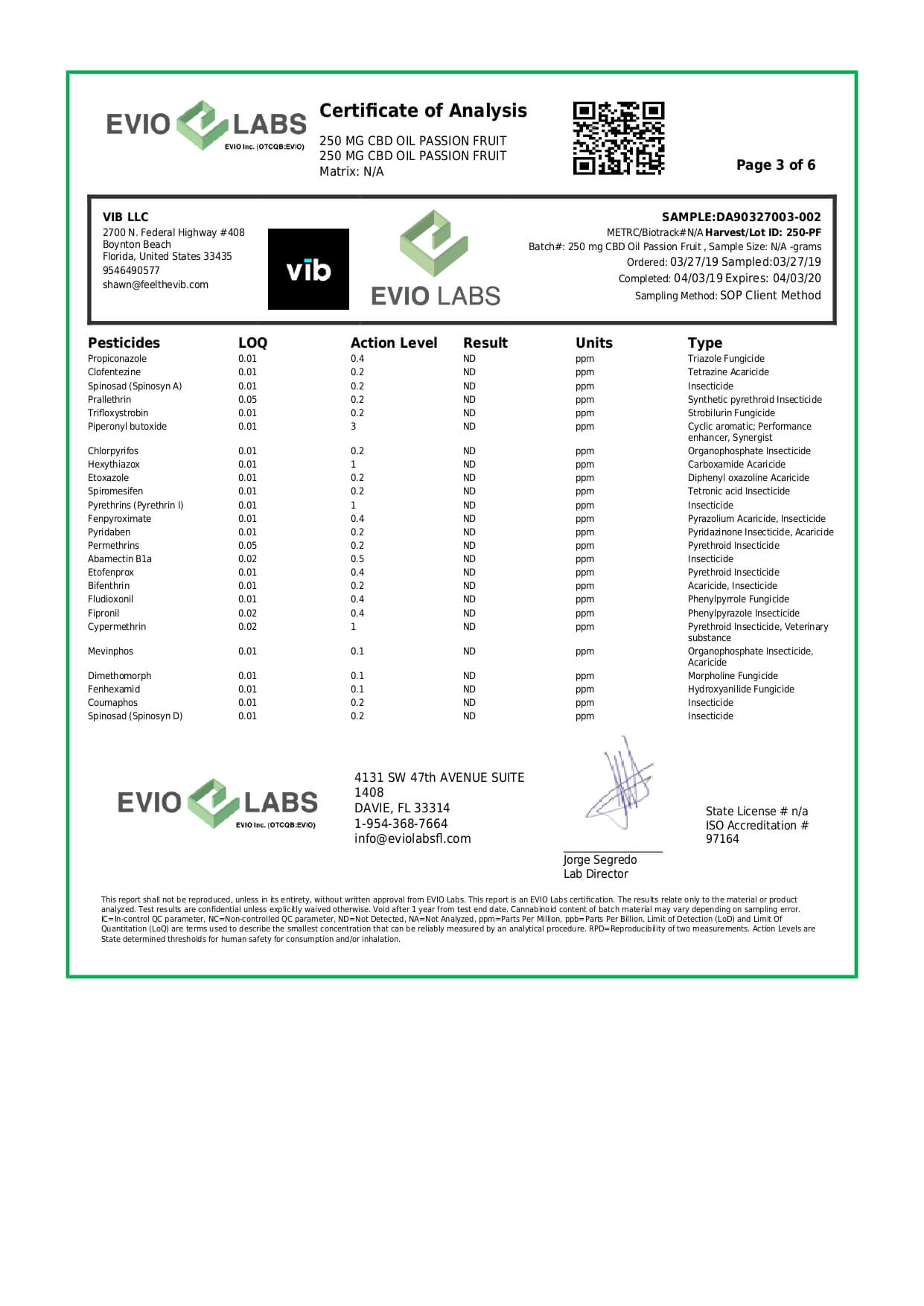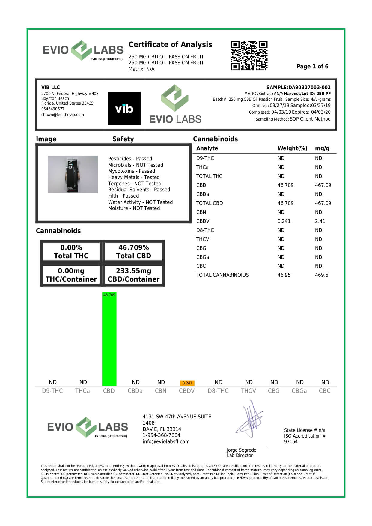 vīb CBD Device Passion Fruit Revive Disposable Vape Pen Lab Report important details about vaping products.