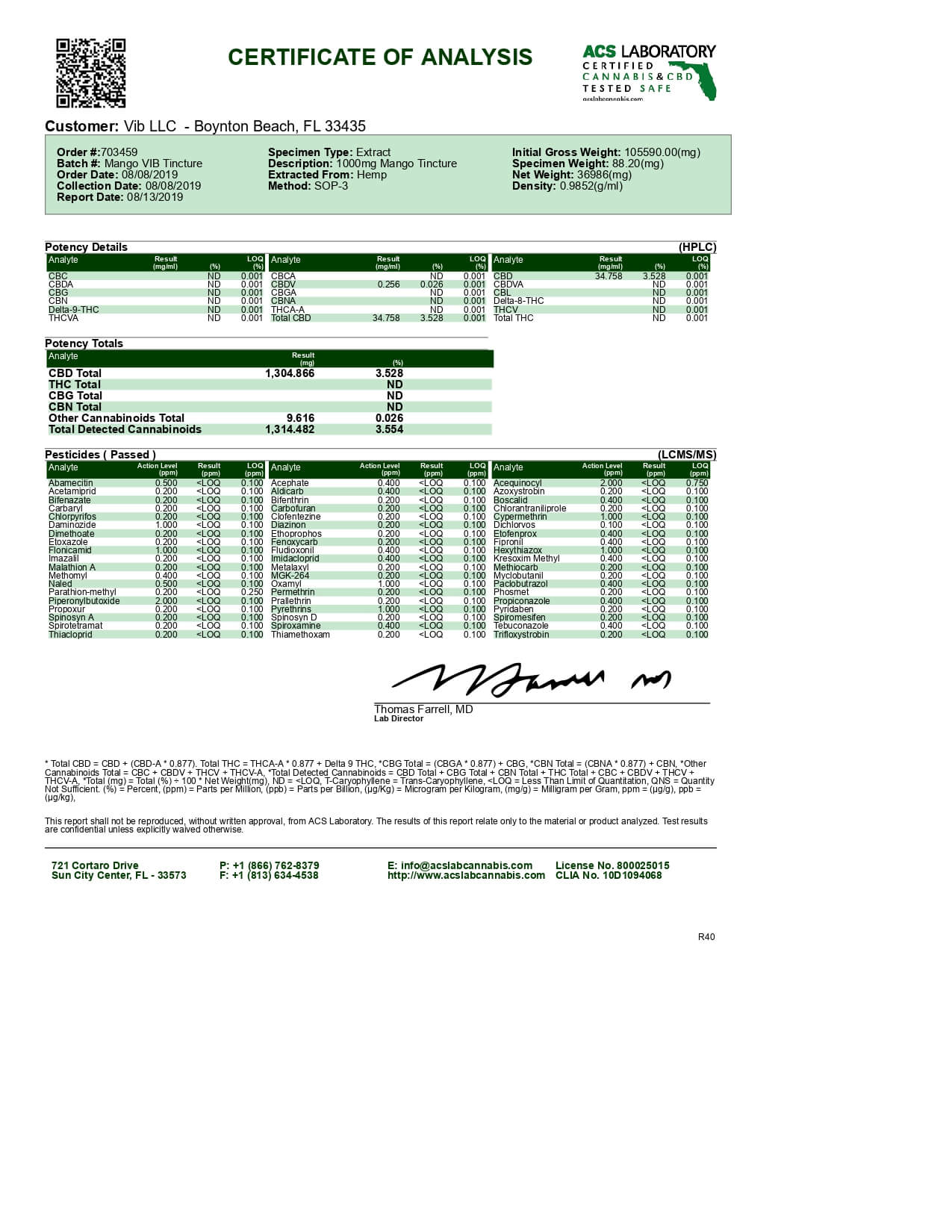 vīb CBD Tincture Mango Lab Report