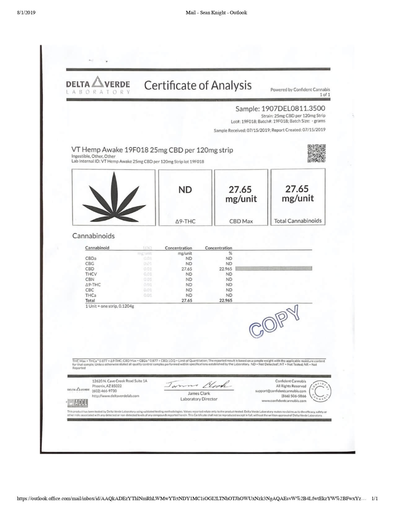 VT-CBD Goods CBD Edible Spearmint Awake Strips Lab Report important details about vaping products.