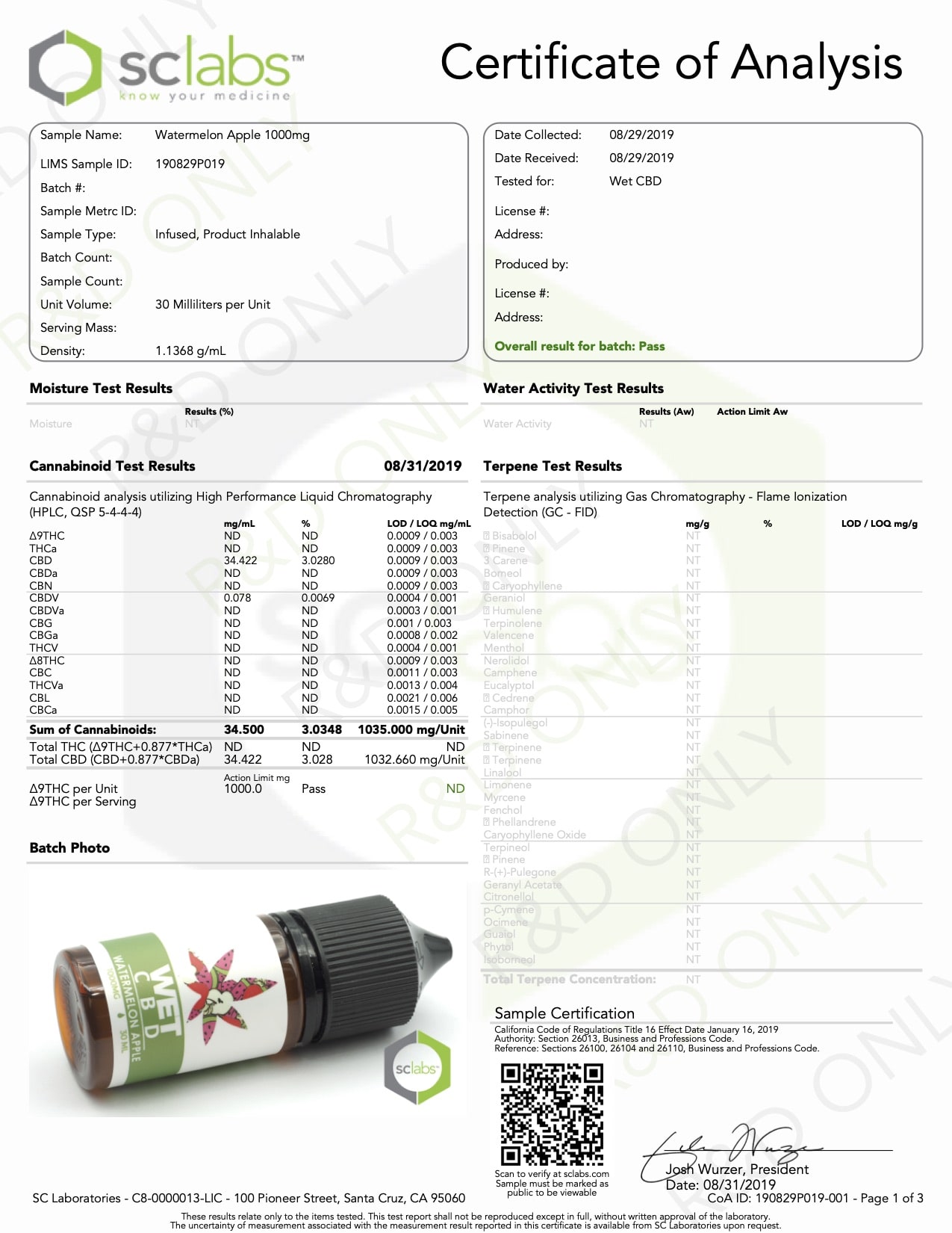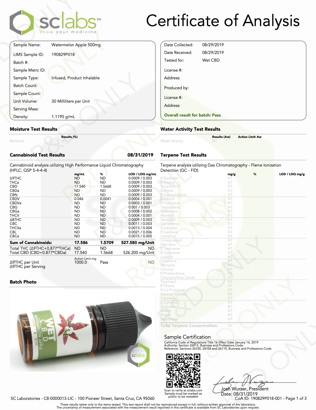 WET CBD Vape Watermelon Apple Lab Report